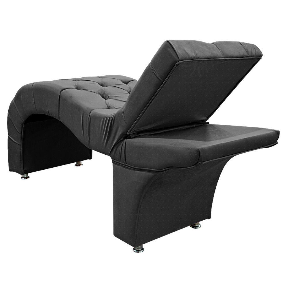 Maca Estética Com Encosto Dobrável Facial Capitonê Cílios Salão P02 Linho Cinza escuro