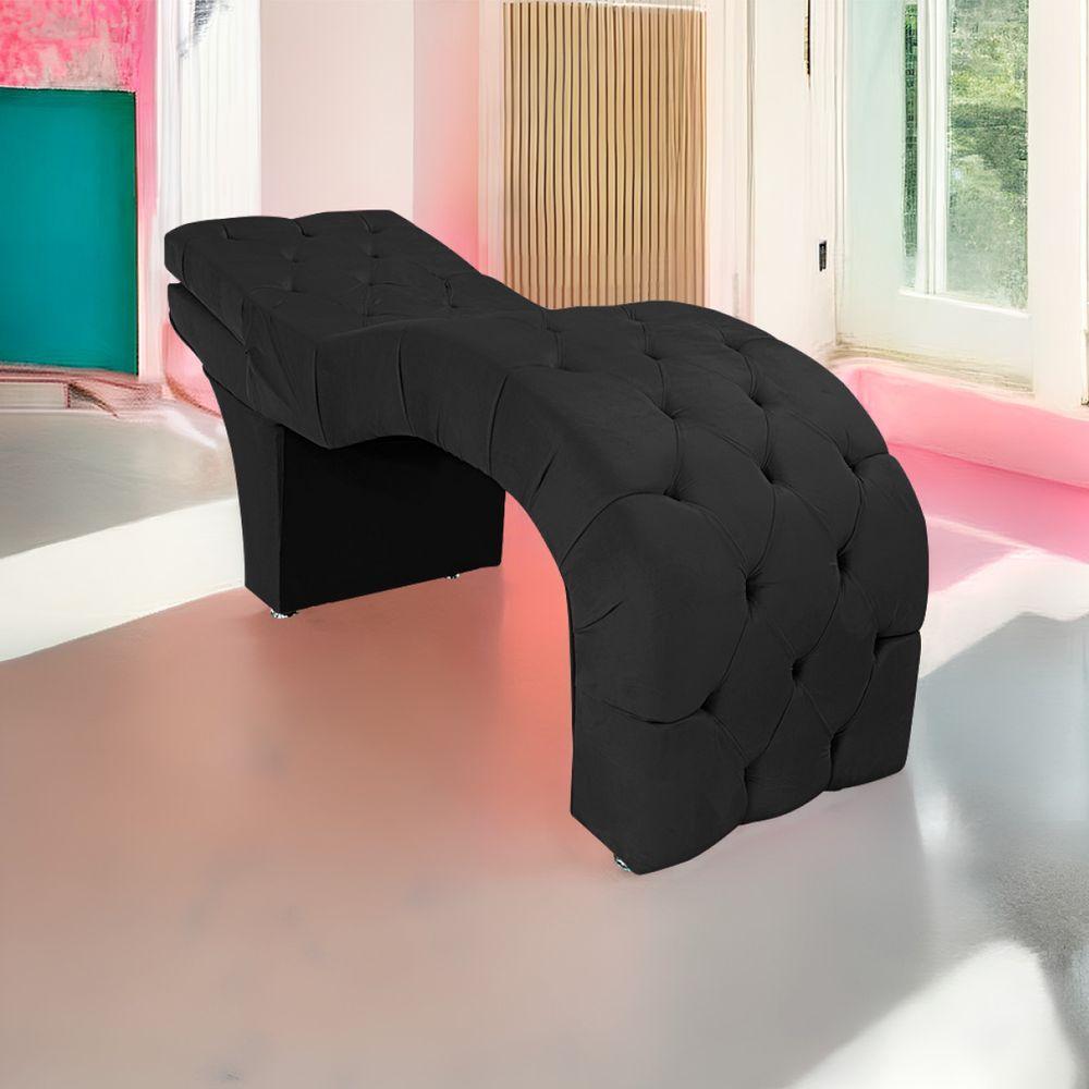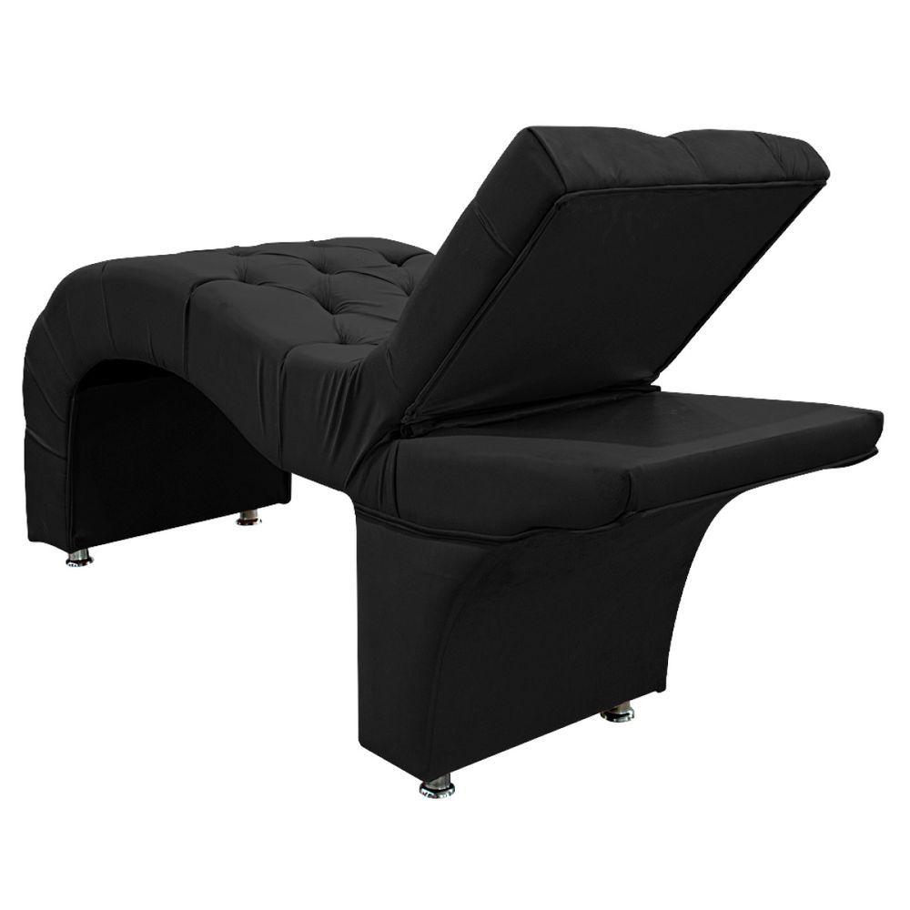 Maca Estética Com Encosto Dobrável Facial Capitonê Cílios Salão P02 Corano Preto