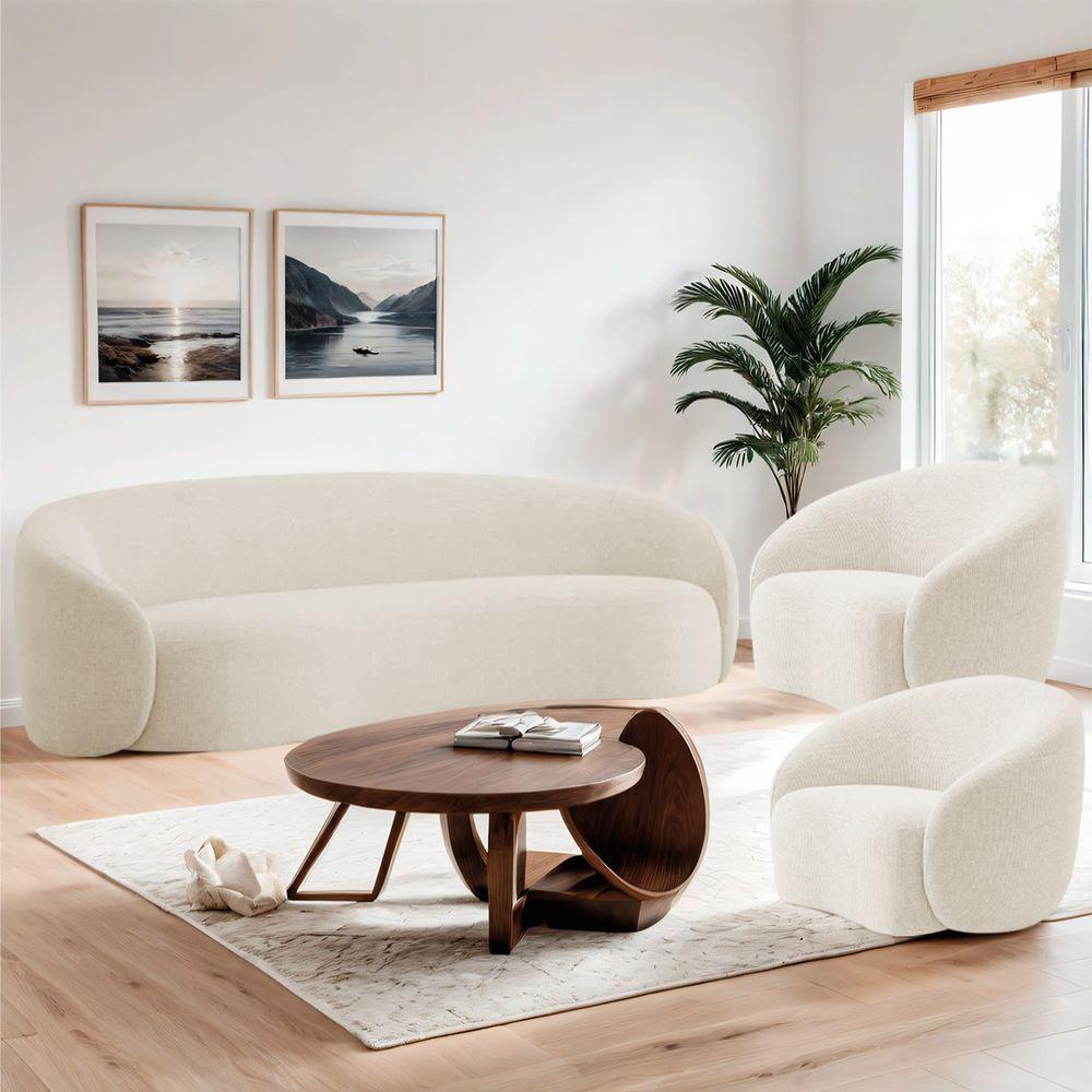 Kit Sofá 3 Lugares 200cm E 2 Poltronas Orgânica Luxo Recepção Amore Bouclé Bege
