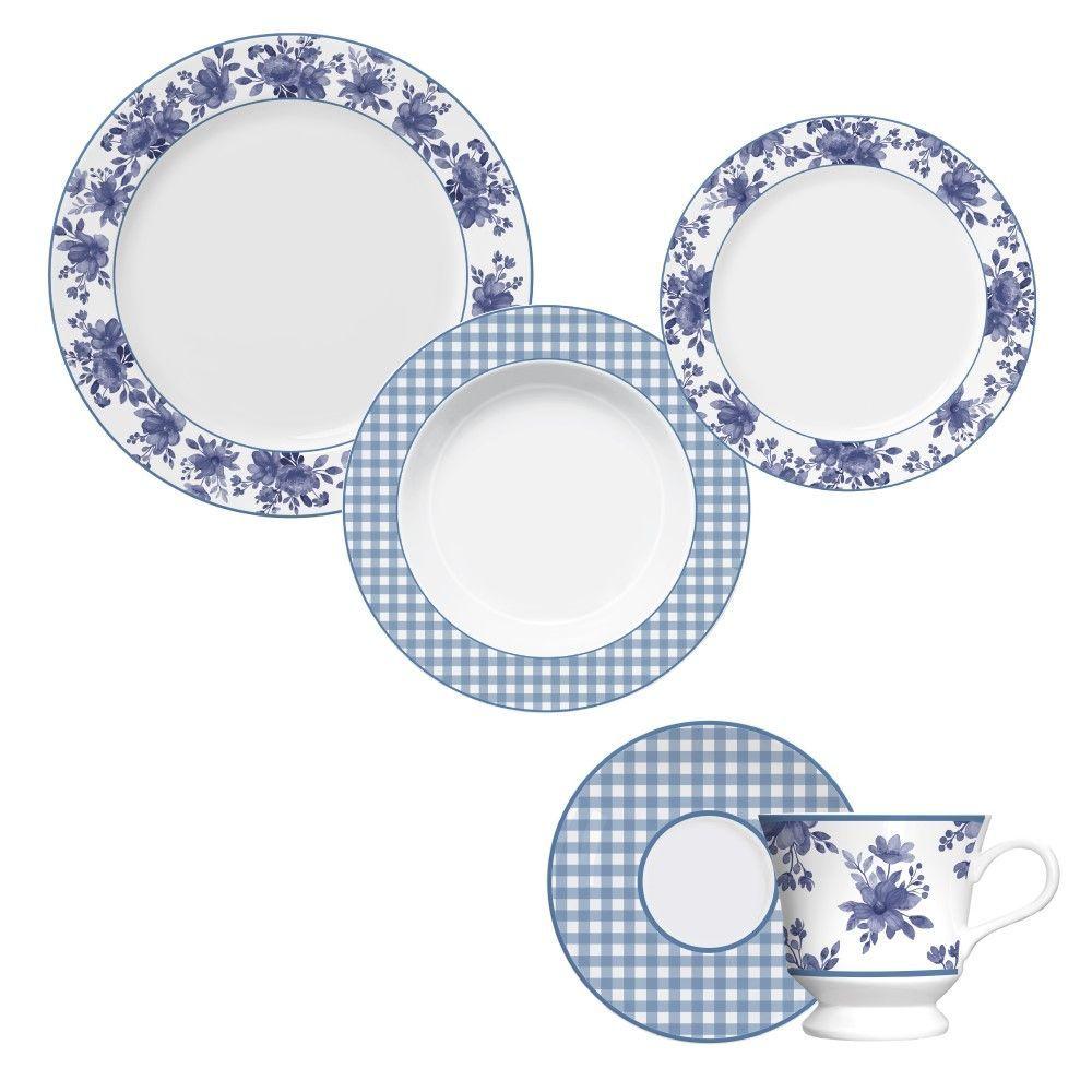 Aparelho De Jantar 30 Peças Floral Azul Germer