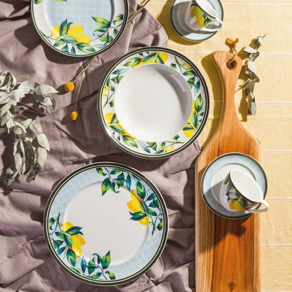 Aparelho De Jantar 30 Peças Malta GermerAparelho de Jantar 30 Peças Malta GermerSeguindo a estética de cerâmicas típicas da essência italiana, a linha Malta exibe a vivacidade das cores vibrantes e estampas maximalistas. Com ela, é só alegria na mesa posta! A decoração com limão siciliano, clássico na mesa posta! Aparelho de Jantar 30 Peças Malta Germer - Incluso6 Pratos Rasos - 28 cm6 Pratos Fundos - 24 cm6 Pratos Sobremesa - 22 cm6 Pires Chá - 09 cm6 Xícaras Chá - 230 ml Aparelho de Jantar 30 Peças Malta Germer - InformaçõesUso: Resistente a micro-ondas, resistente a lava-louçasMaterial: PorcelanaFormato: RedondoDecoração: Malta - limão sicilianoCor: Branco, verde, azul e amarelo