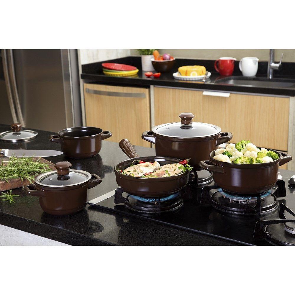 Jogo De Panelas De Cerâmica Smart Duo 5 Peças Chocolate Ceraflame