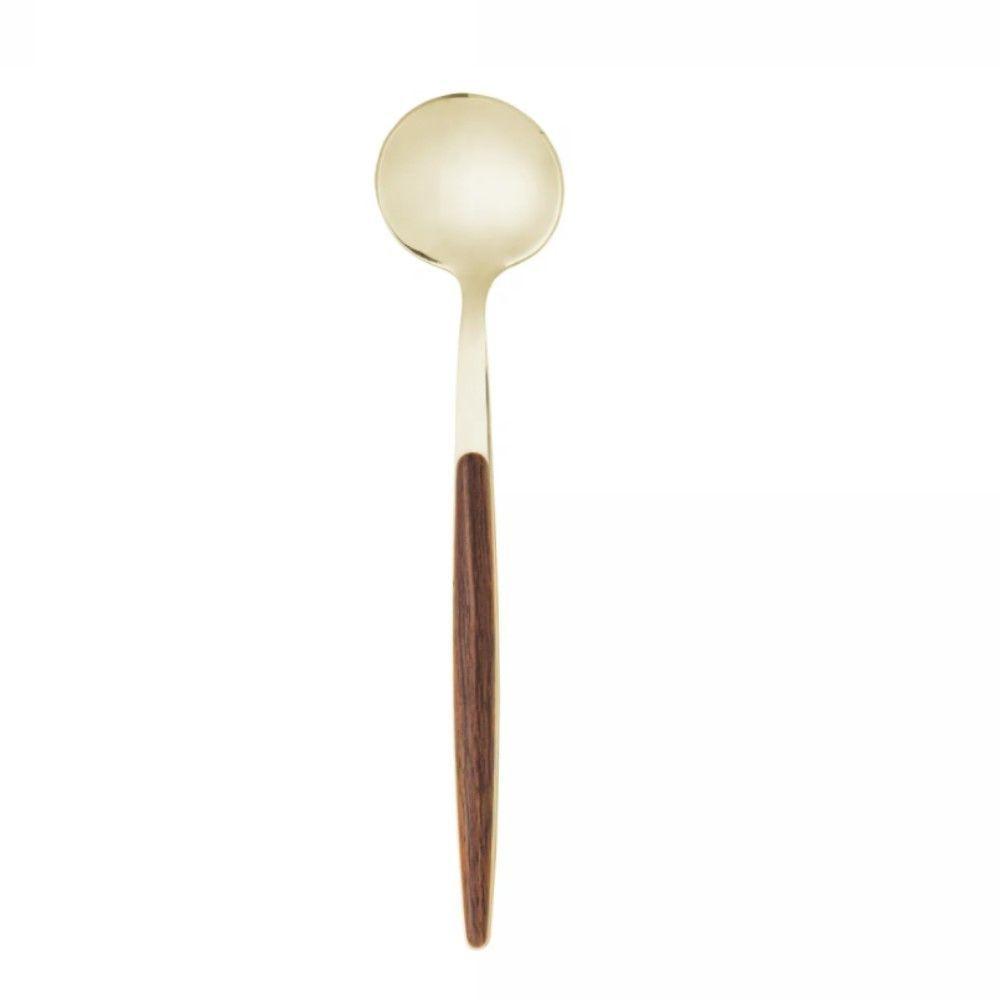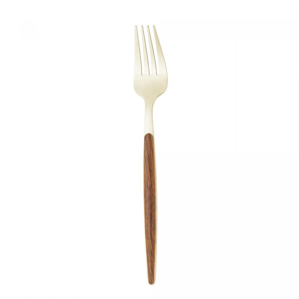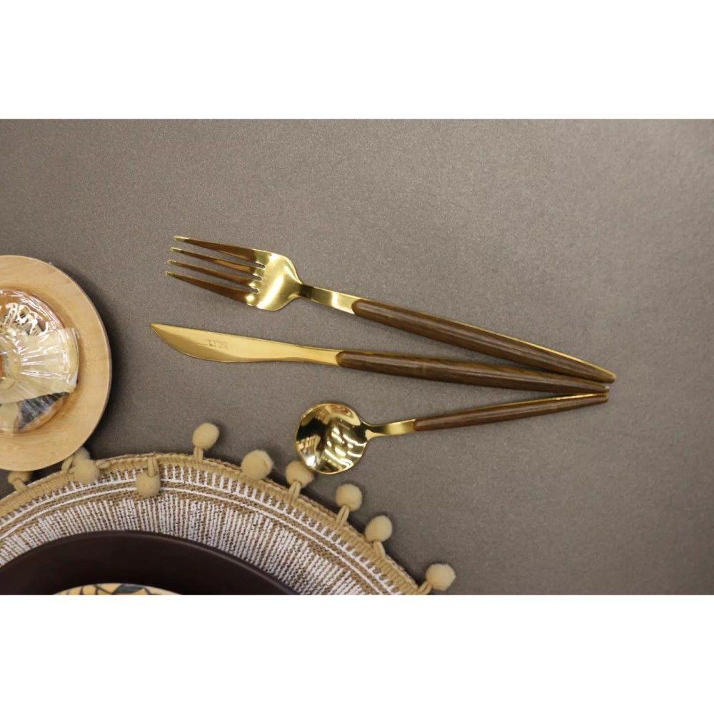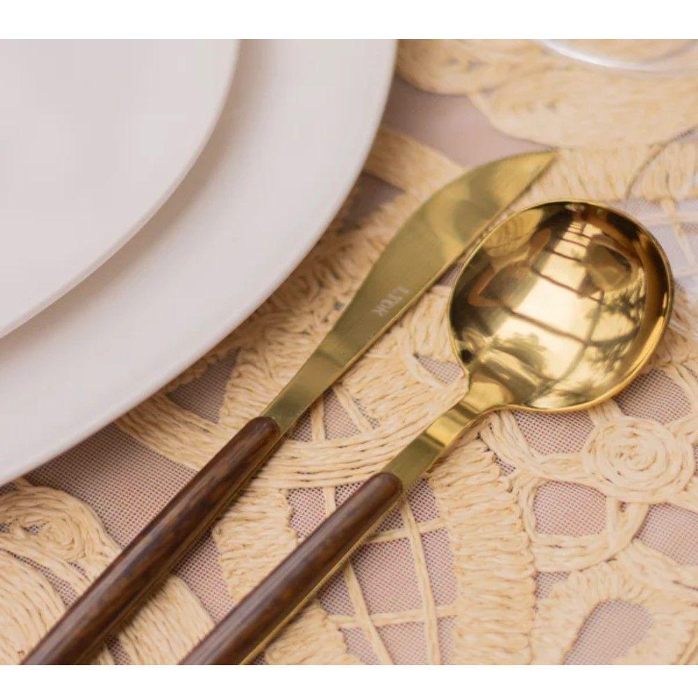 Faqueiro 24 Peças Organic Dourado Aço Inox Com Cabo Em Madeira Lyor