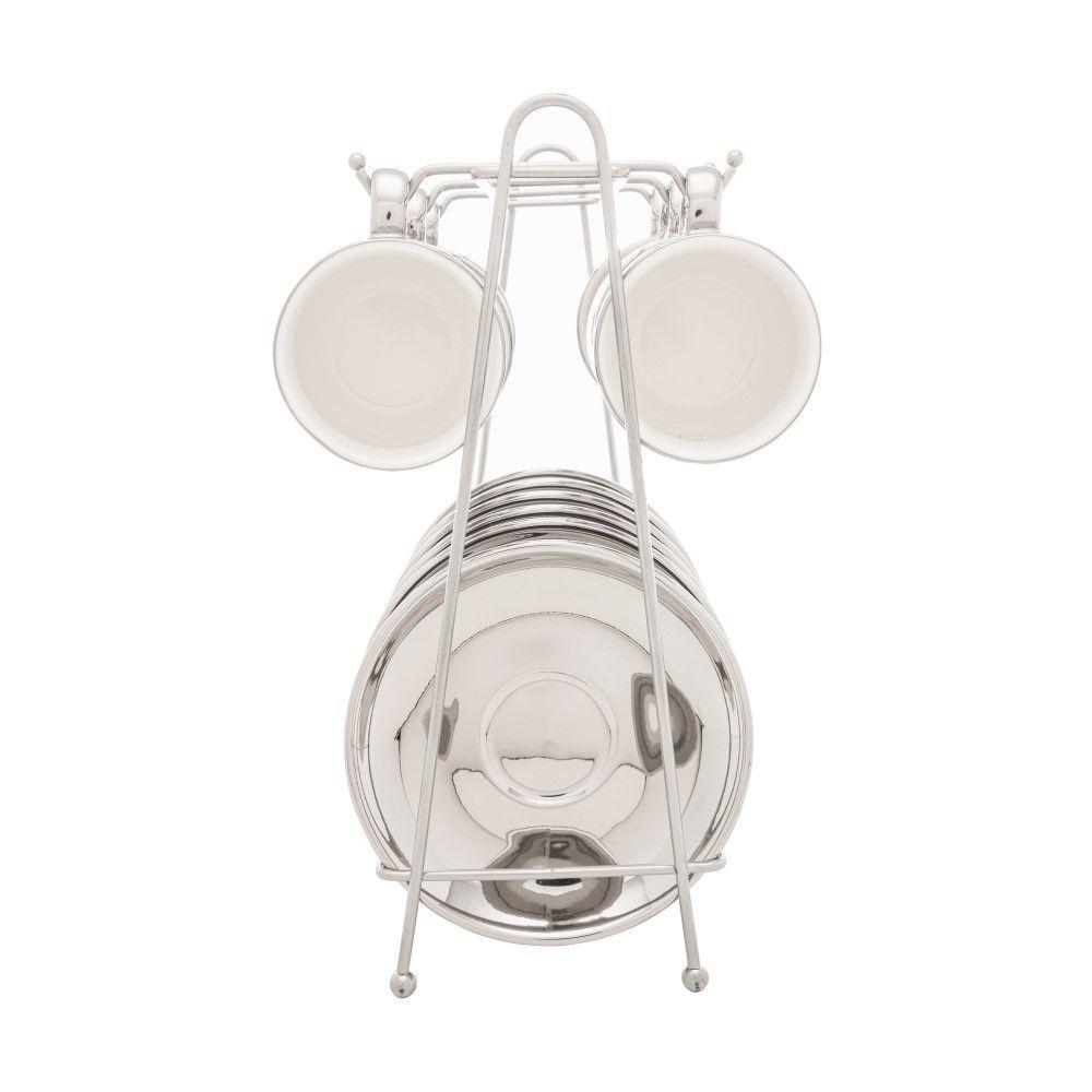 Conjunto De Xícara De Café 6 Peças De Porcelana Com Suporte Versa Prata-branco 90 Ml Wolff