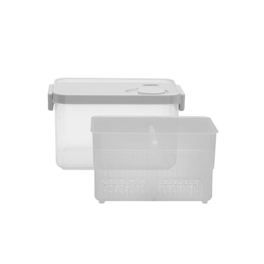 Kit 03 Potes Organizadores De Geladeira Organizzare Com Controle De Umidade TramontinaKit 03 Potes Organizadores de Geladeira Organizzare com Controle de Umidade TramontinaSe você busca uma solução completa para armazenar os seus alimentos com qualidade e praticidade, o pote organizador de geladeira Tramontina Organizzare com controle de umidade é a escolha perfeita. Com sua capacidade extremamente espaçosa e tampa com ventilação ajustável, você garante que seus alimentos se mantenham frescos, saborosos e nutritivos por muito mais tempo. O cesto de drenagem inovador e o divisor removível tornam a organização fácil e versátil, permitindo que você maximize o espaço da sua geladeira sem comprometer a qualidade dos alimentos. O controle de data giratório facilita a gestão do tempo de armazenamento, e seu design de fluxo de ar otimizado prolonga a vida útil dos alimentos. Estes potes são indispensáveis para quem valoriza organização e economia de tempo e dinheiro na cozinha.Kit 03 Potes Organizadores de Geladeira Organizzare com Controle de Umidade Tramontina - Medidas01 Pote Organizador (Comp. X Larg. x Alt.): 17,6 x 11,5 x 10,7 cm / Capacidade: 0,9L01 Pote Organizador (Comp. X Larg. x Alt.): 24,5 x 15,8 x 13,9 cm / Capacidade: 2,8L01 Pote Organizador (Comp. X Larg. x Alt.): 29,4 x 20,7 x 17 cm / Capacidade: 6,2LKit 03 Potes Organizadores de Geladeira Organizzare com Controle de Umidade Tramontina - InformaçõesVentilação e umidade controladas: a tampa com ventilação ajustável mantém o nível ideal de umidade para cada tipo de alimento, mantendo-os frescos por mais tempo. Possui bandeja de drenagem que impede que a umidade acumulada se mantenha no alimento, evitando o murchamento e a deterioração precoce. A função giratória do mostrador de data torna fácil definir o período de armazenamento. Usando o divisor removível, o cesto de drenagem pode alternar entre dois estados de divisão: esquerda-direita e superior-inferior. Design de fluxo de ar aprimorado.Kit 03 Potes Organizadores de Geladeira Organizzare com Controle de Umidade Tramontina - Na sua casa