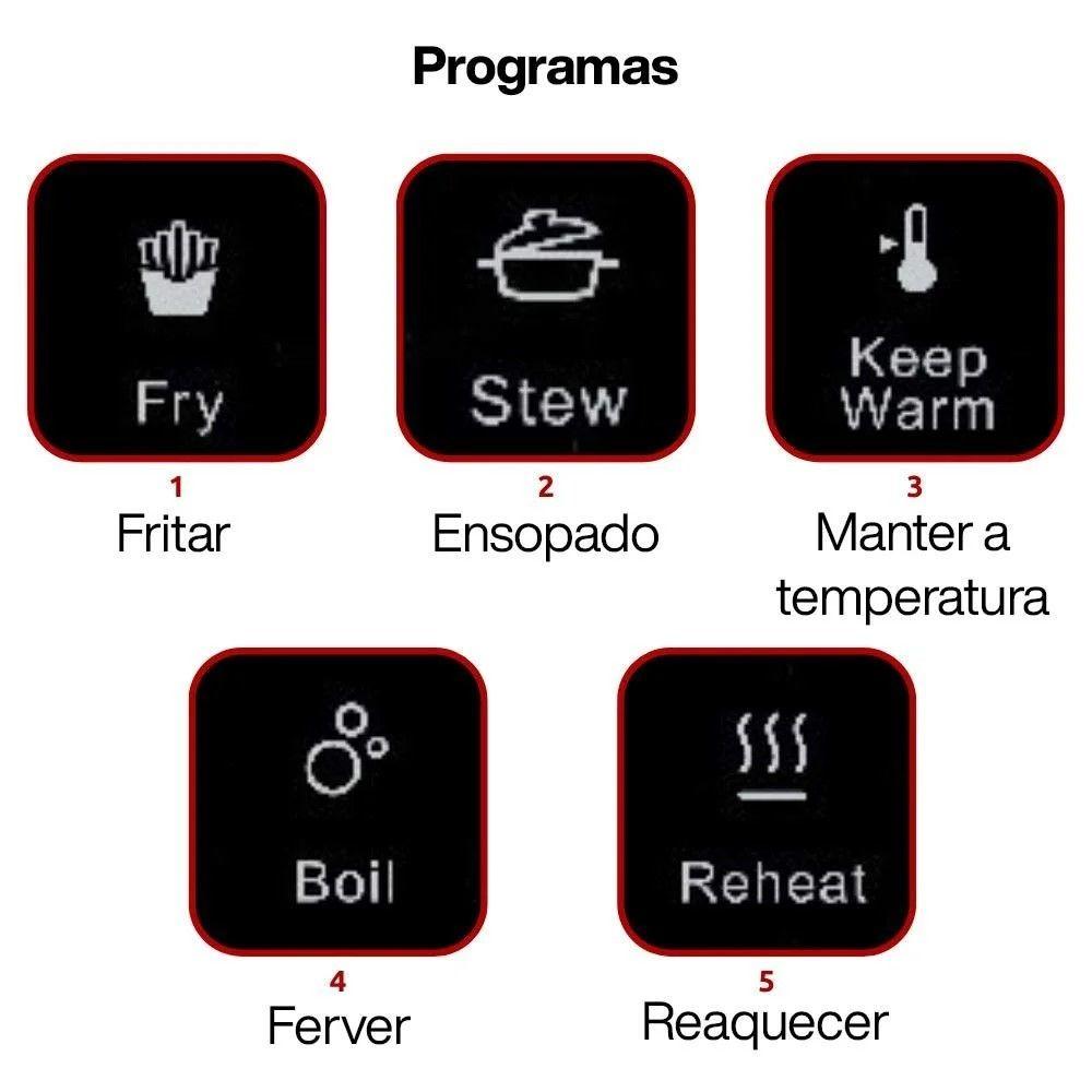 Cooktop Indução Portátil 1 Boca Touch 1200W Preto Ariete 110VCooktop de Indução Portátil 1997 Vitrocerâmico 1 boca Touch Screen 1200W 110V Preto ArieteO Cooktop de Indução Portátil Ariete 1997 é compacto e perfeito para cozinhas com pouco espaço, viagens e até escritório. Com potência de até 1200W, ele cozinha de forma rápida e eficiente, aceitando panelas de até 28cm. Conta com 10 níveis de potência e 5 programas pré-definidos para facilitar o preparo de diversas receitas. Sua superfície em vitrocerâmica é fácil de limpar e possui trava de segurança infantil com desligamento automático após 2h.Cooktop de Indução Portátil 1997 Vitrocerâmico 1 boca Touch Screen Preto 1200W 110V Ariete - InformaçõesPortátil, cozinhe onde precisarFácil de limparFunção de segurança para crianças1200W de potênciaPara panelas de até 28 cm de diâmetroCooktop de Indução Portátil 1997 Vitrocerâmico 1 boca Touch Screen Preto 1200W 110V Ariete - Especificações TécnicasModelo: 1997Cor: PretoPotência: 1200WVoltagem: 110VNíveis de potência: 10Programas predefinidos: 5Temperatura: até 240°Placas vitrocerâmicas (bocas): 1Diâmetro da panela: 28 cmVisor digital com tela sensível ao toque: SimÁrea de cozimento: 29x37cmCozimento ultrarrápido: SimTempo: até 4 horasSegurança infantil: SimDesligamento automático: após 2 horasDimensões (L x A x P): 29 x 4,5 x 37cmPeso da caixa: 2,8 kg