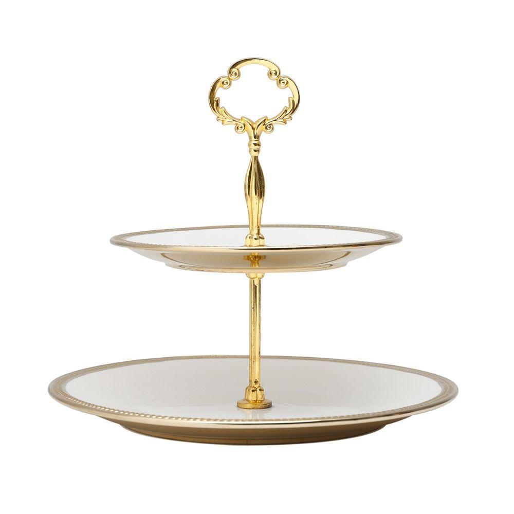Porta Doces De Porcelana 2 Andares Paddy Branco E Dourado 19/27 X 24 Cm Wolff