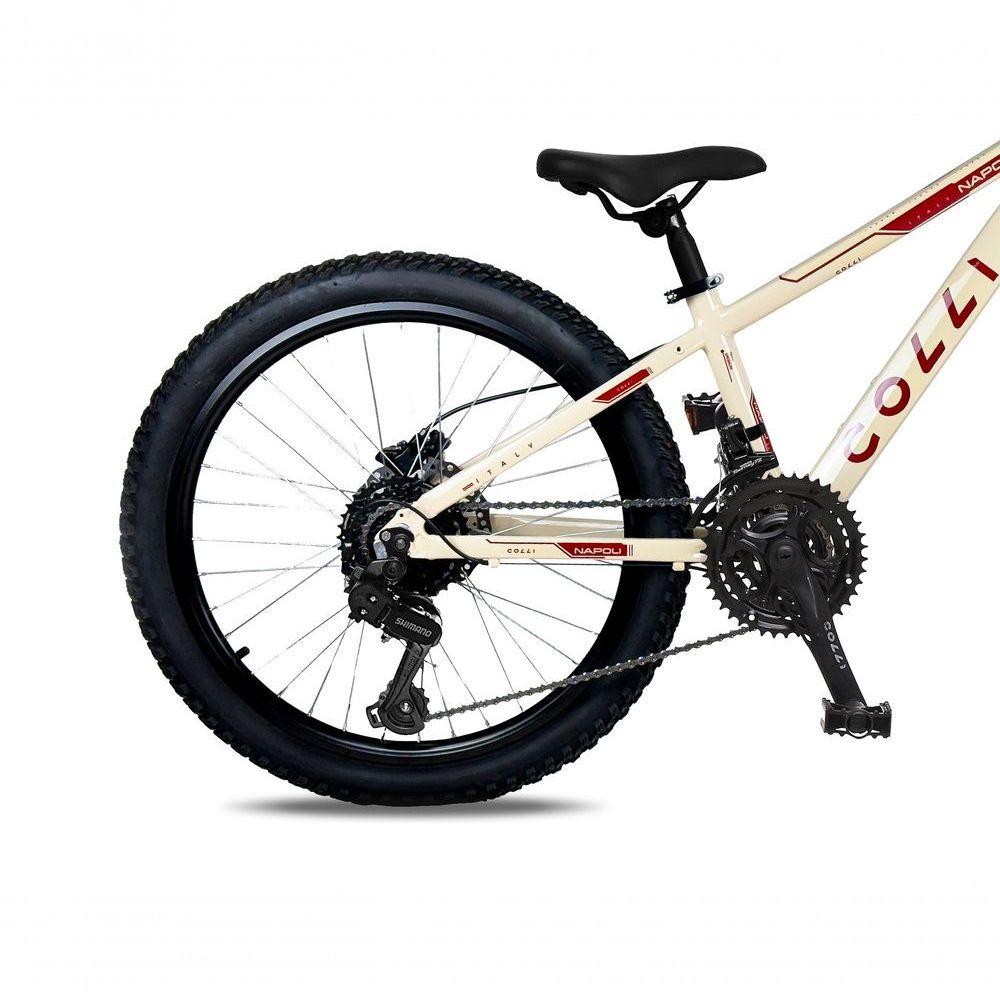 Bicicleta Colli Napoli Sport Aro 24 BrancoA Bicicleta Colli Nápoli Sport Aro 24 é perfeita para quem busca desempenho, resistência e conforto em um só produto. Com quadro em alumínio e câmbio Shimano de 21 velocidades, ela garante trocas de marchas precisas e maior eficiência durante os percursos.Seu design moderno combina robustez e leveza, proporcionando uma experiência de pedalada mais agradável. Equipada com freios a disco, suspensão dianteira e pneus 24x1.75, oferece estabilidade e segurança em diferentes tipos de terreno.Além disso, conta com componentes de qualidade, como pedivela triplo em aço, guidão em alumínio e manoplas em gel, que tornam o uso mais ergonômico e durável.Com medidas ideais para quem procura uma bicicleta prática e confortável, a Colli Nápoli Sport é indicada a partir de 14 anos e suporta até 120 kg, unindo estilo e performance para o seu dia a dia ou momentos de lazer.COMPONENTES - BICICLETA COLLI NÁPOLI SPORT ARO 24ABRAÇADEIRAAbraçadeira selim com blocagem (34.9mm)ALAVANCAAlavanca dir EZ-Fire 7V STEF41/STEF500 ShimanoAROAro 24 aero 36F dianteiro freio a disco c/ blocagemCÂMBIO DIANTEIROCâmbio dianteiro 28.6/31.8 dual (pedivela reduzido)CÂMARA DE ARCâmara de ar aro 24CABO DE FREIOCabo de freio para bicicleta freio a disco 1.5x1900mmCANOTECanote do selim 31.6mm c/ carrinhoGARFOGarfo aro 24 suspensão Over Ahead Set 28.6 p/ discoFITAFita para aro 20ESPACADOREspaçador de guidão de alumínio 10mmEIXO CENTRALEixo centro ponta quadrada 5U com porcaCORRENTECorrente fina 1/2x3/32 IndexCONDUÍTEConduíte encapado câmbioGUIDÃOGuidão alumínio 31.8 x 580mm 9°FREIOKit freio a disco pinça/discoPNEUPneu 24x1.75PEDIVELAPedivela triplo aço (24/34/42)PEDALPedal Stone 9/16 pretoMOVIMENTO DE DIREÇÃOMovimento direção integrado 28.6mm (44/44)MOVIMENTO CENTRALMovimento central 34.7mm com colarMANOPLAManopla gel importadaCÂMBIO TRASEIROCâmbio traseiro s/ gancheira 7V TZ31/TY300 ShimanoDADOS DO PRODUTO MONTADOALTURA: 1120 mmLARGURA: 730 mmCOMPRIMENTO: 1880 mmPESO LÍQUIDO: 14,37 kgPESO BRUTO: 16,47 kgObservações:- Todos os produtos têm três (03) meses de garantia fornecida pelo fornecedor- As imagens são meramente ilustrativas, os objetos que ambientam as fotos não acompanham o produto.- Pode haver alguma diferença de tonalidade entre a foto e o produto, devido ao tratamento de imagens e a calibração do monitor- A entrega é realizada por transportadora, não nos responsabilizamos, no ato da entrega por desmontagens, subir escadas/elevadores ou transporte por guincho para apartamentos- Eventuais despesas são de responsabilidade do cliente- Confira as dimensões dos volumes e certifique-se de que passará normalmente por supostos elevadores, portas, escadas ou corredores- Ao receber a mercadoria, verifique as condições da embalagem, caso haja alguma avaria, entre em contato com nosso SAC- Nossa empresa não se responsabiliza pela montagem dos produtos, mas todos os produtos possuem manual de montagem. Recomendamos que a montagem seja feita por profissional de sua confiança.