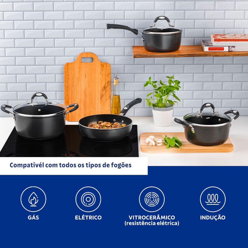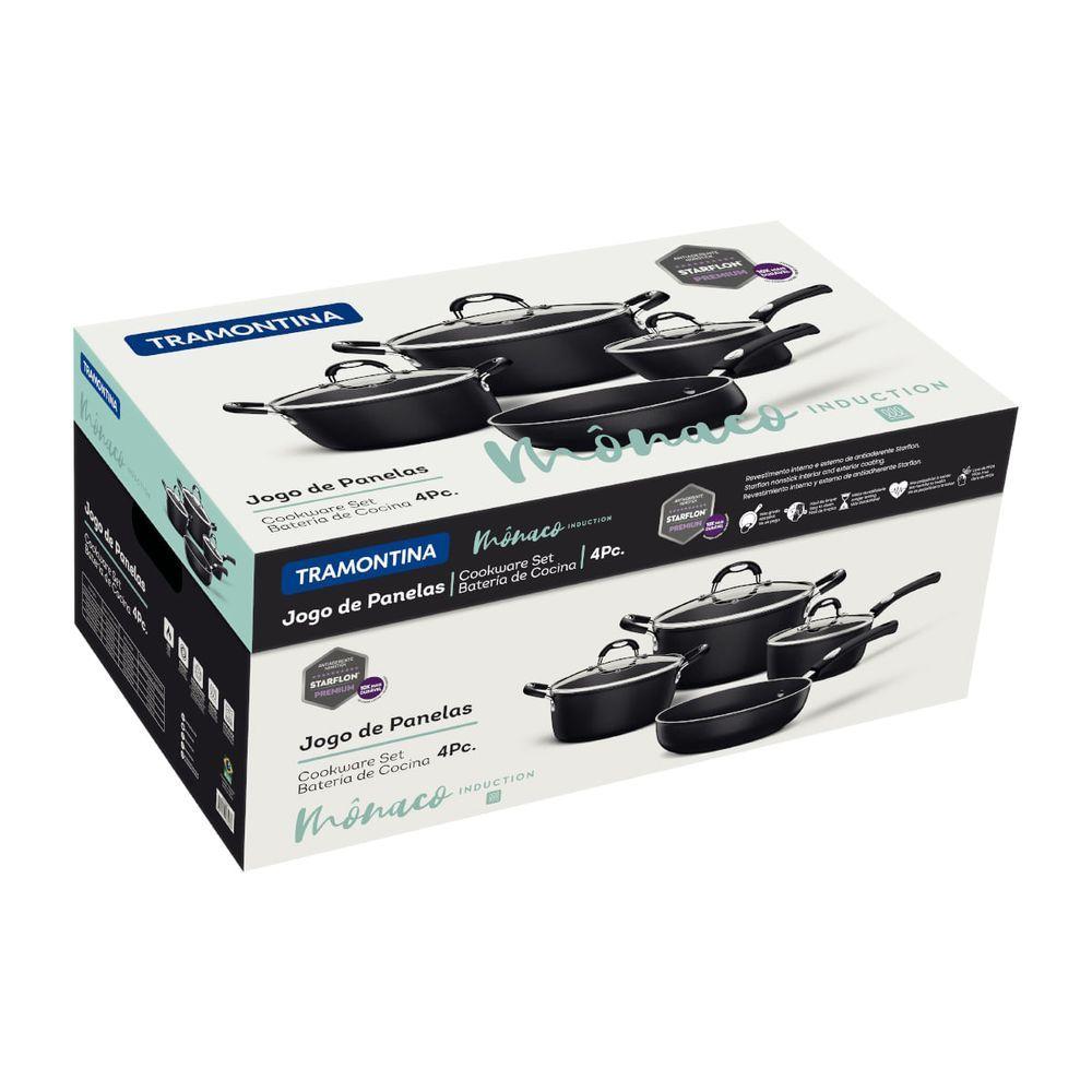 Jogo De Panelas Tramontina Mônaco Indução Alumínio Preto 4 Peças