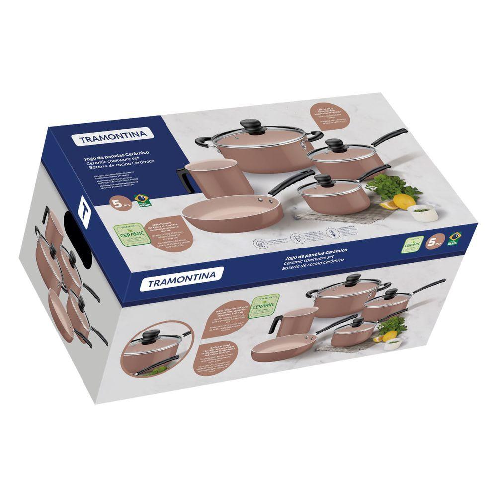 Jogo De Panelas Tramontina 5 Peças Em Alumínio Com Revestimento Interno Cerâmico Capuccino