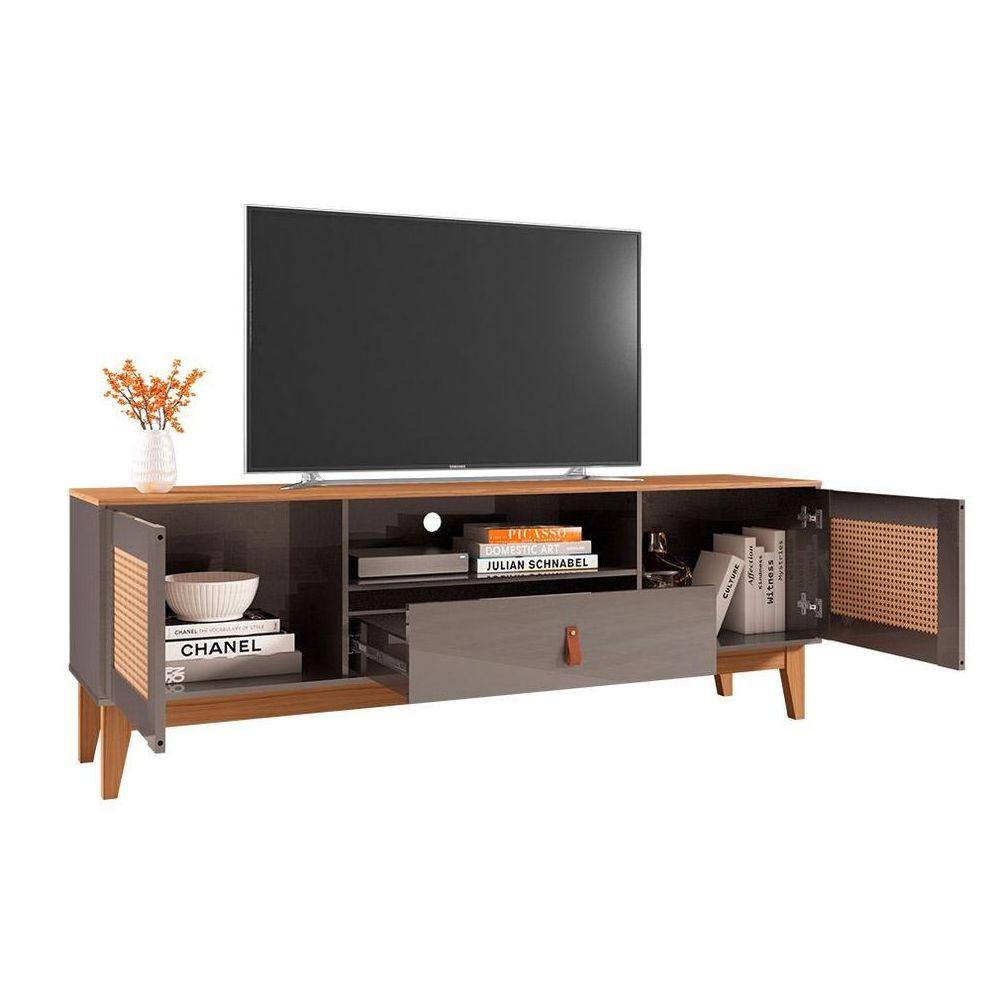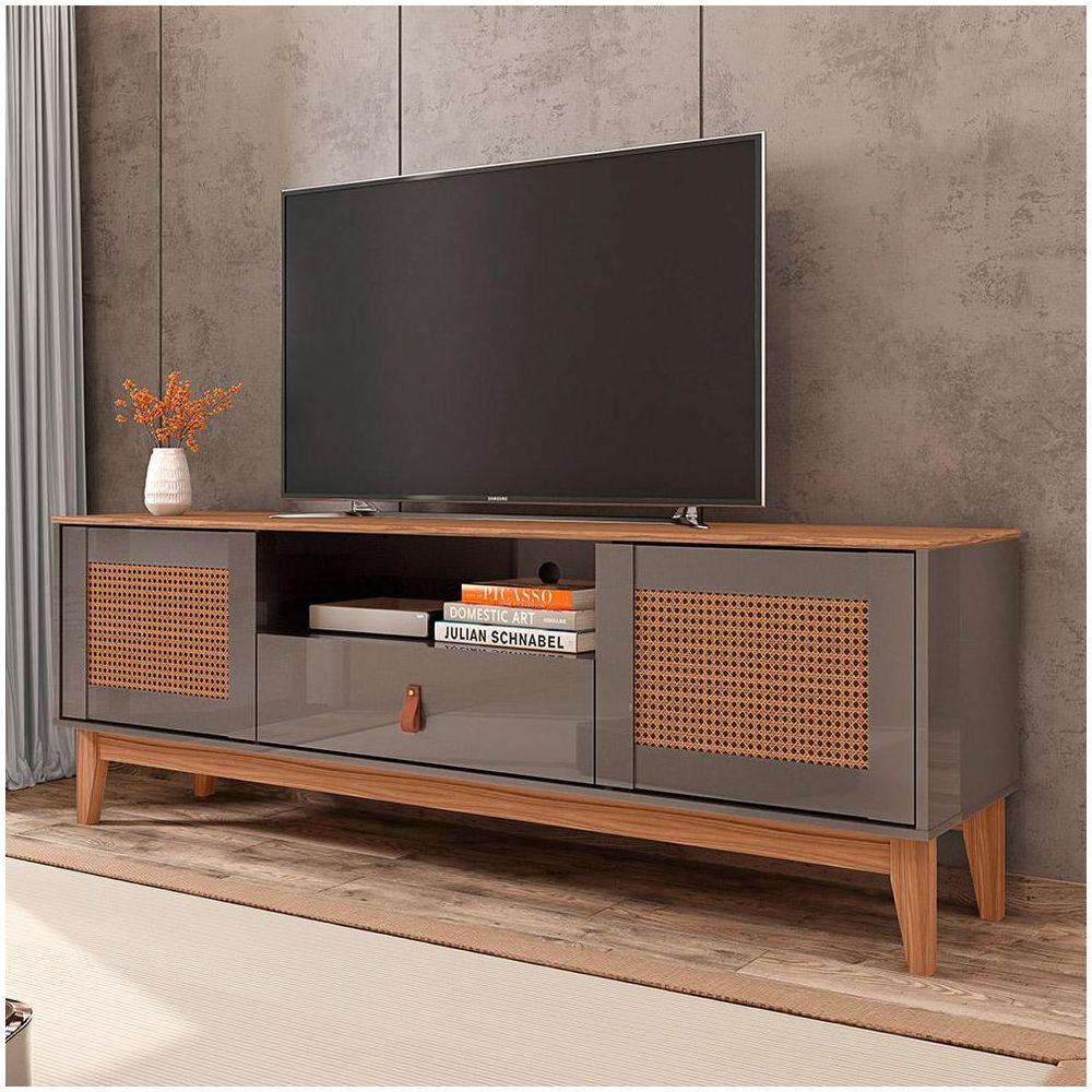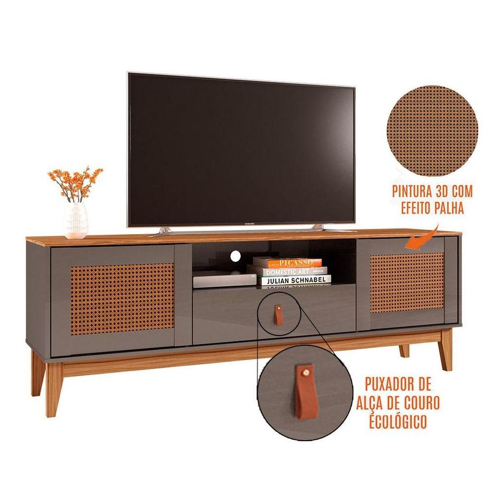 Rack Sala Esmeralda Para Tv Até 60 Polegadas Pés Em Madeira Cinza Perola/noce