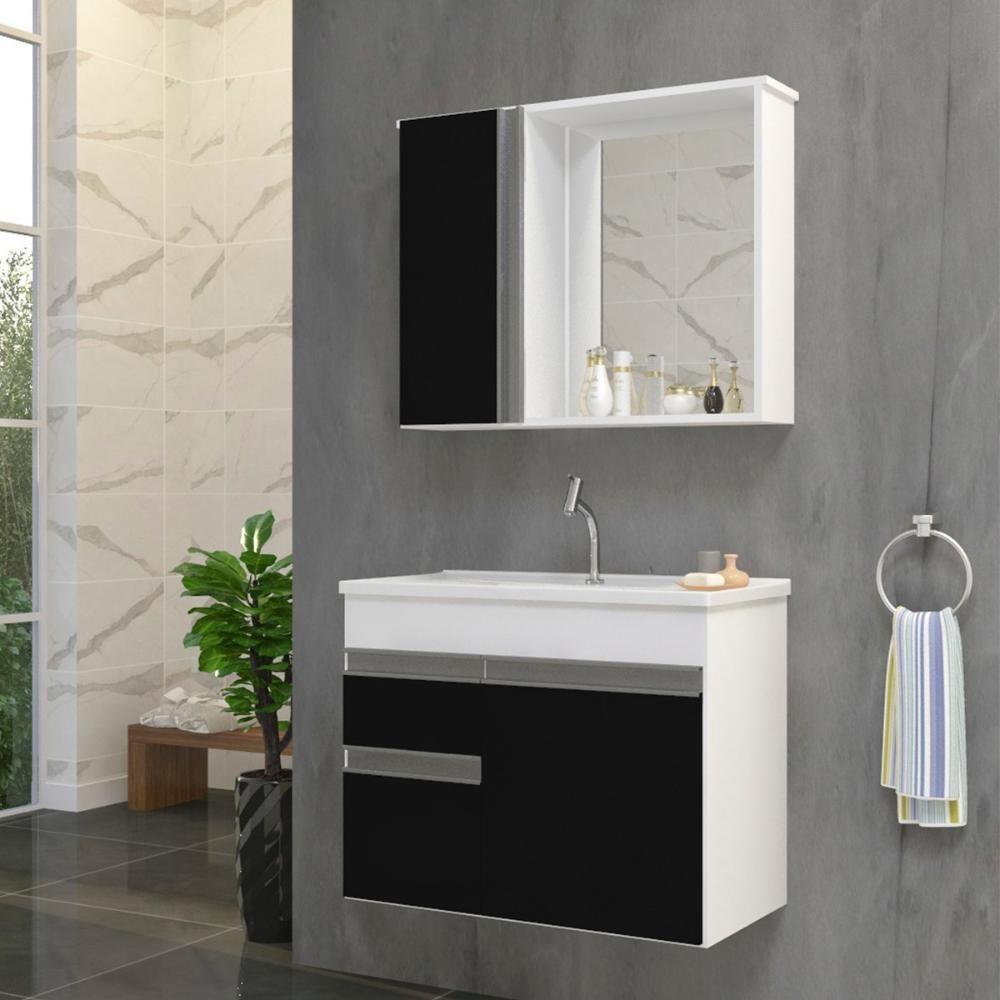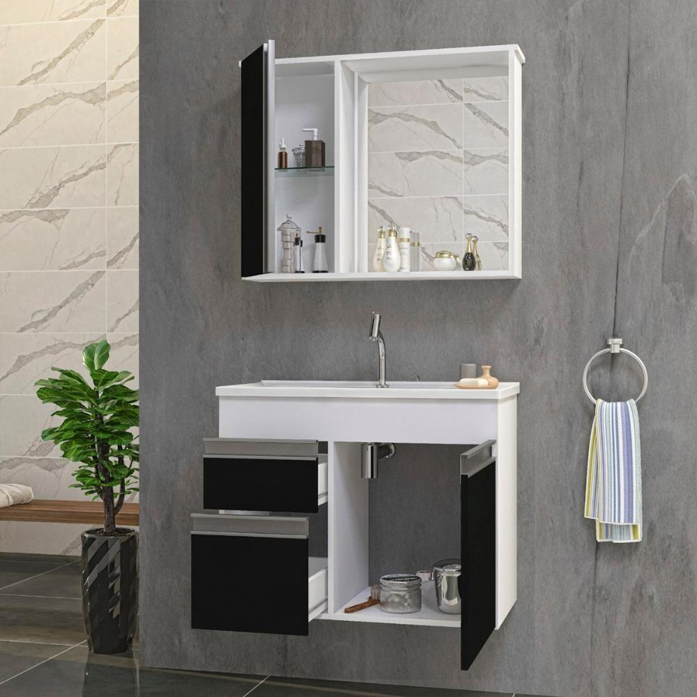 Gabinete Armario Para Banheiro Firenze Com Espelheira E Cuba Branco/preto