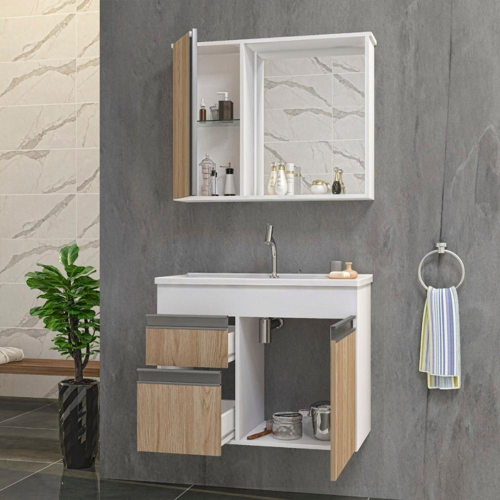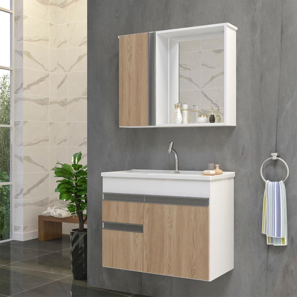 Gabinete Armario Para Banheiro Firenze Com Espelheira E Cuba Branco/areal