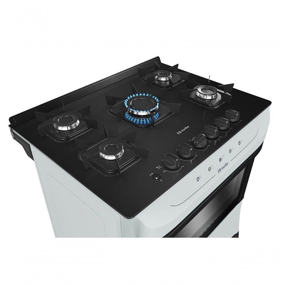 Fogão Mueller 5 Bocas Com Mesa De Vidro e Acendimento Branco MFV5BB Bivolt