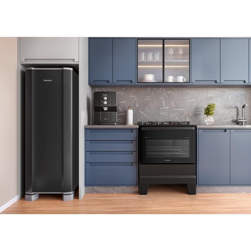 Fogão Esmaltec 5 Bocas Ideal Master Glass Mesa de Vidro Forno 84 Litros Preto T5VFP Bivolt