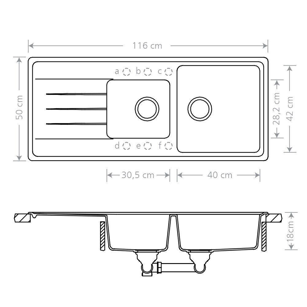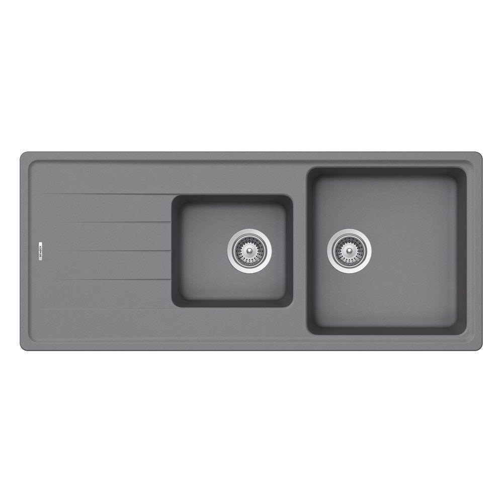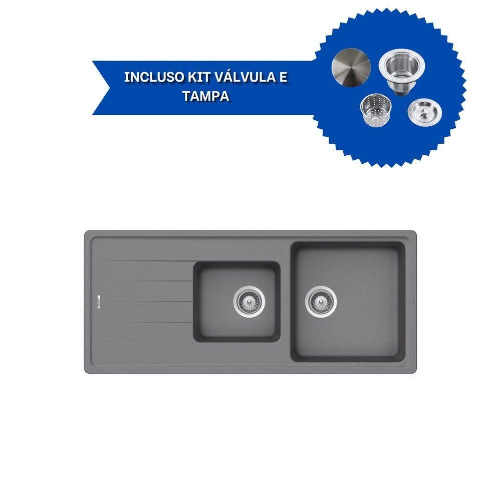Cuba De Cozinha Em Quartzo Arell 201E + Válvula Cinza/Inox