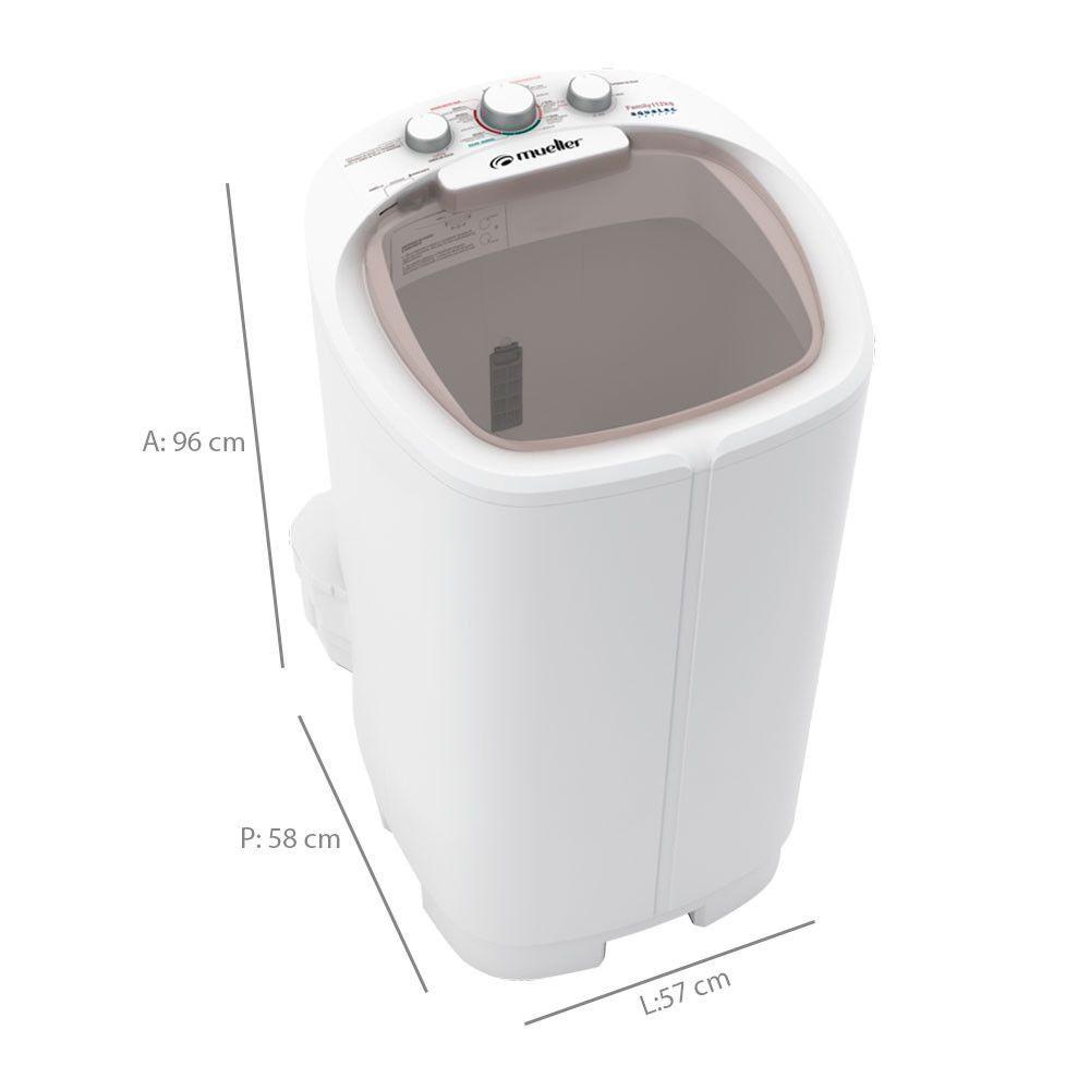 Máquina De Lavar Family Aquatec 12kg Semiautomática Mueller Branco 110VLave grandes quantidades de roupas com maior facilidade com a Family 12Kg, trazendo muita praticidade e performance para o seu dia a dia. Confira mais detalhes: Lave as roupas da familia toda Ela tem capacidade para lavar desde pecas mais leves ate pecas mais grandes, como edredons, cortinas, e ate colchas. Tecnologia Aquatec Voce pode controlar a entrada e a saida da agua pelo painel, optando entre um dos 3 niveis de agua. O sistema nao permite que a maquina transborde, evitando assim, o desperdicio. 6 Programas de lavagem com indicacoes do tempo de lavagem e as pecas ideais para cada processo. Alem de um filtro de fiapos e turbilhonador super potente.Caracteristicas: Marca: Mueller Modelo: Family Aquatec Capacidade de lavagem: 12 kg Programas: 6 programas Niveis de agua: 3 niveis Nao possui programa de centrifugacao Material do cesto: NA Display: Nao Visualizador de etapas de lavagem: Nao Abertura da tampa: Superior Funcoes: Filtro de fiapos, molho, turbilhamento Dispenser para alvejante: Nao Dispenser para sabao em po: Sim Dispenser para amaciante: Sim Enxague: Nao Agua quente: Nao Molho: Sim Filtro de fiapos: Sim Eficiencia energetica: A Consumo: 0,10 kWh/ciclo Frequencia: 60 Hz Inmetro: Sim Potencia para 110V: 330 W Potencia para 220V: 335 W Conteudo da embalagem: 01 lavadora e manual de instrucoes Dimensoes: Altura: 96 cm Largura: 57 cm Profundidade: 58 cm Peso: 11,65 kg Garantia do fornecedor: 12 meses (3 meses de garantia legal e mais 9 meses de garantia especial concedida pelo fabricante). ATENCAO: Nao nos responsabilizamos, no ato da entrega, por desmontagens, subir escadas/elevadores ou transporte por guincho para apartamentos. Eventuais despesas sao de responsabilidade do cliente. Confira as dimensoes deste produto e certifique-se de que passara normalmente por supostos elevadores, portas, escadas e/ou corredores de sua moradia. Recomendamos que os produtos sejam instalados por profissionais especializados e nao nos responsabilizamos pelo mau uso ou instalacao indevida, causando a perda da garantia. Todas as informacoes divulgadas sao de responsabilidade do fabricante/fornecedor. Valor unitario. Imagem meramente ilustrativa Prazo de troca e devolucao: 7 dias a partir do recebimento do produto - Lei n 8.078 Sempre confira no ato da entrega.