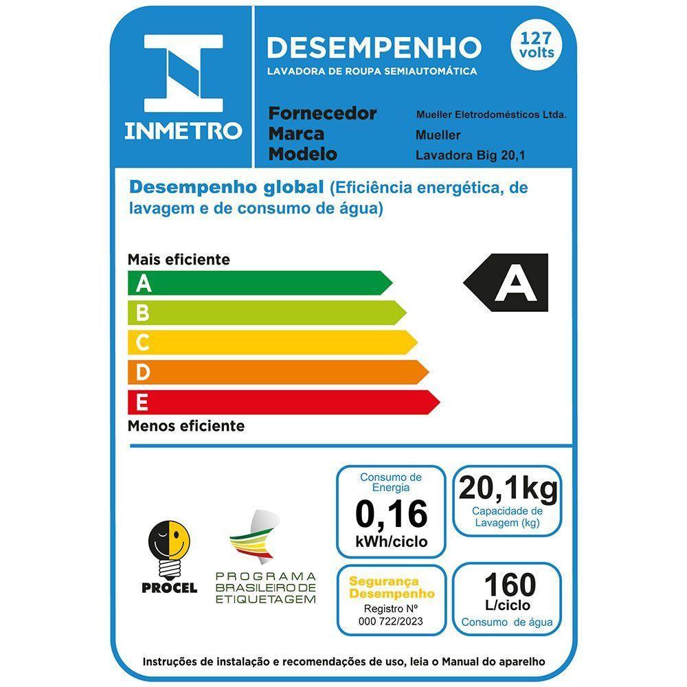 Lavadora De Roupas Semiautomática 20,1kg Mueller Big Branco 110V