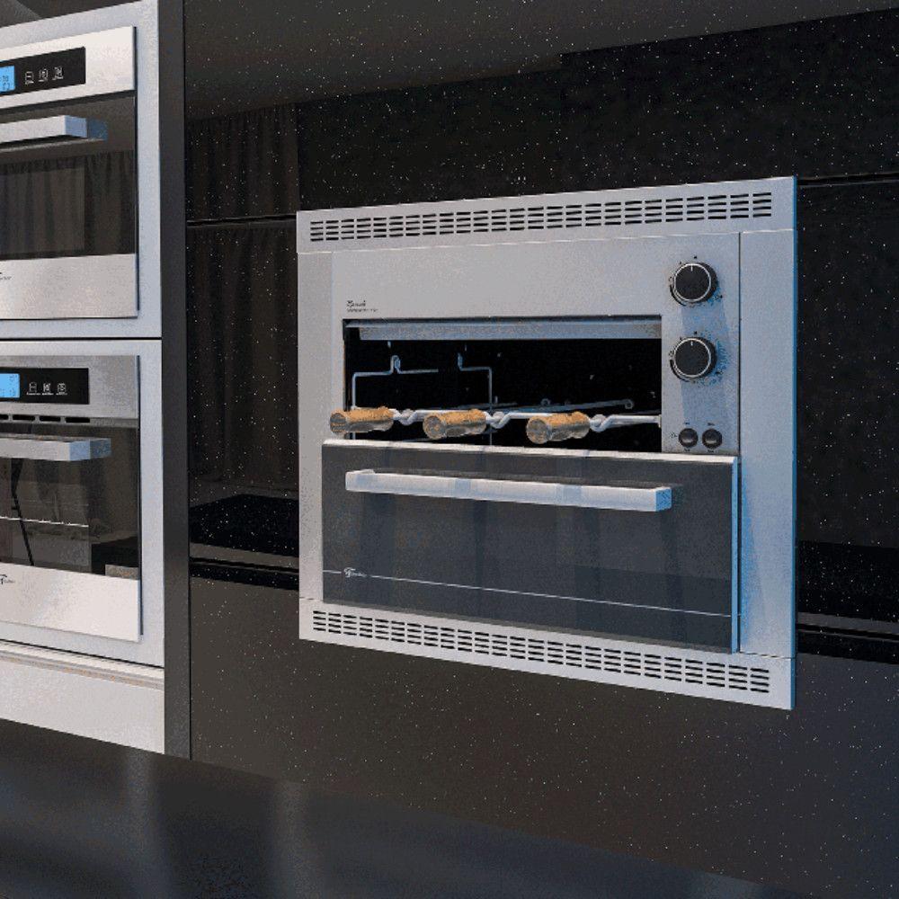 Churrasqueira A Gás Ranch 3 Espetos Giratórios Fischer Inox BivoltChurrasqueira a Gas Fischer Ranch 3 Espetos Giratorios 18122-19256 - GN Bivolt -Caracteristicas:Acendimento: AutomaticoBandeja para residuos: Removivel com acabamento esmaltado easy cleanCabo de alimentacao: 0,90 mConsumo de gas: 380 g/h de GLPDiferenciais: Isolamento total com manta ceramica e aluminio; Corpo interno esmaltado easy-cleanFrequencia: 50/60 HzGrelha: Em aco com acabamento cromadoMaterial do corpo: Aco inoxidavel escovadoPotencia da lampada: 25 wattsPotencia do motor: 3 x 4 WattsPotencia dos queimadores: 2 x 2.250 KcalPressao do gas: 28 a 37 mbar = 2,8 a 3,17 kPa (GLP)Sistema rotativo: SimTensao: Bivolt (Ajuste por chave seletora)Tipo de alimentacao: A gasTipo de controle: Eletromecanico; Individual dos queimadoresTipo de gas: GNTipo de queimadores: Queimadores infra-vermelhos com controlador individualModelo: Bancada; Embutir somente em alvenariaModelo referencia do produto: 18122-19256 - GNConteudo da Embalagem:01 Manual de Instrucoes01 Rede de Postos autorizados02 Espetos Simples02 Espetos Duplos02 Suportes Laterais para Grelha: 01 grelha01 Lampada 110v (para voltagem 220V instalada)Dimensoes do nicho de Instalacao:Altura: 56 cmLargura: 67 cmProfundidade: 60 cmDimensoes externas da embalagem:Altura: 64,5 cmLargura: 73 cmProfundidade: 62 cmDimensoes externas sem moldura:Altura: 54,4 cmLargura: 57,5 cmProfundidade: 63 cmDimensoes internas do produto:Altura: 35 cmLargura: 46 cmProfundidade: 45 cmPeso: Peso liquido: 26,11 kgPeso bruto: 30,52 kgGarantia: 12 Meses de Garantia de FabricaObservacoes: O produto sai de fabrica regulado para funcionar com Gas Liquefeito de Petroleo (GLP), sendo possivel a conversao para GN atraves de um POSTO AUTORIZADO FISCHER.