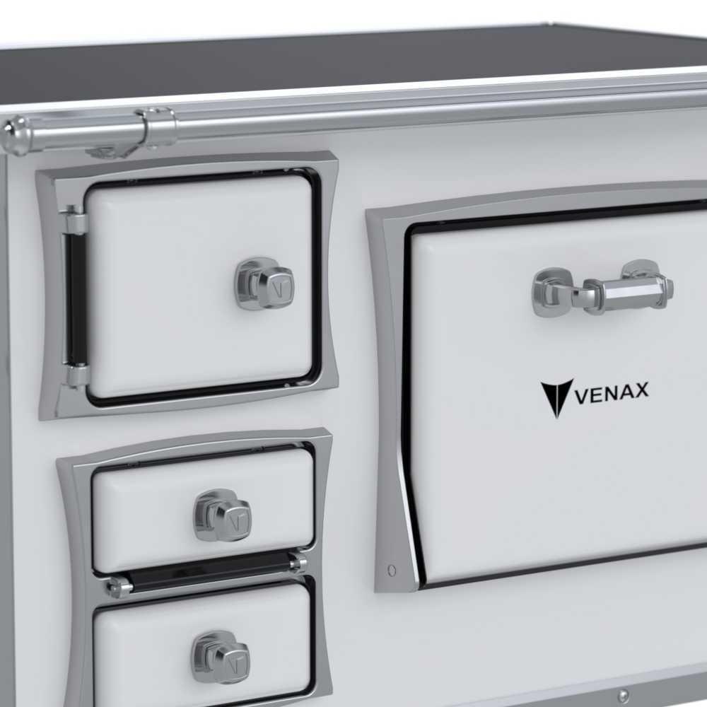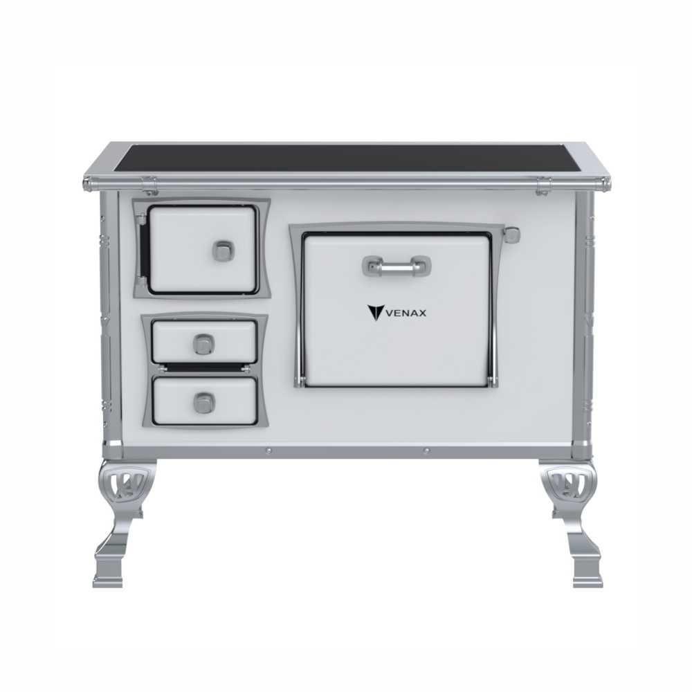 Fogão A Lenha N° 02 Venax Premium Gii Branco Chapa Vitrocerâmica Saída Direita Sem Tampa