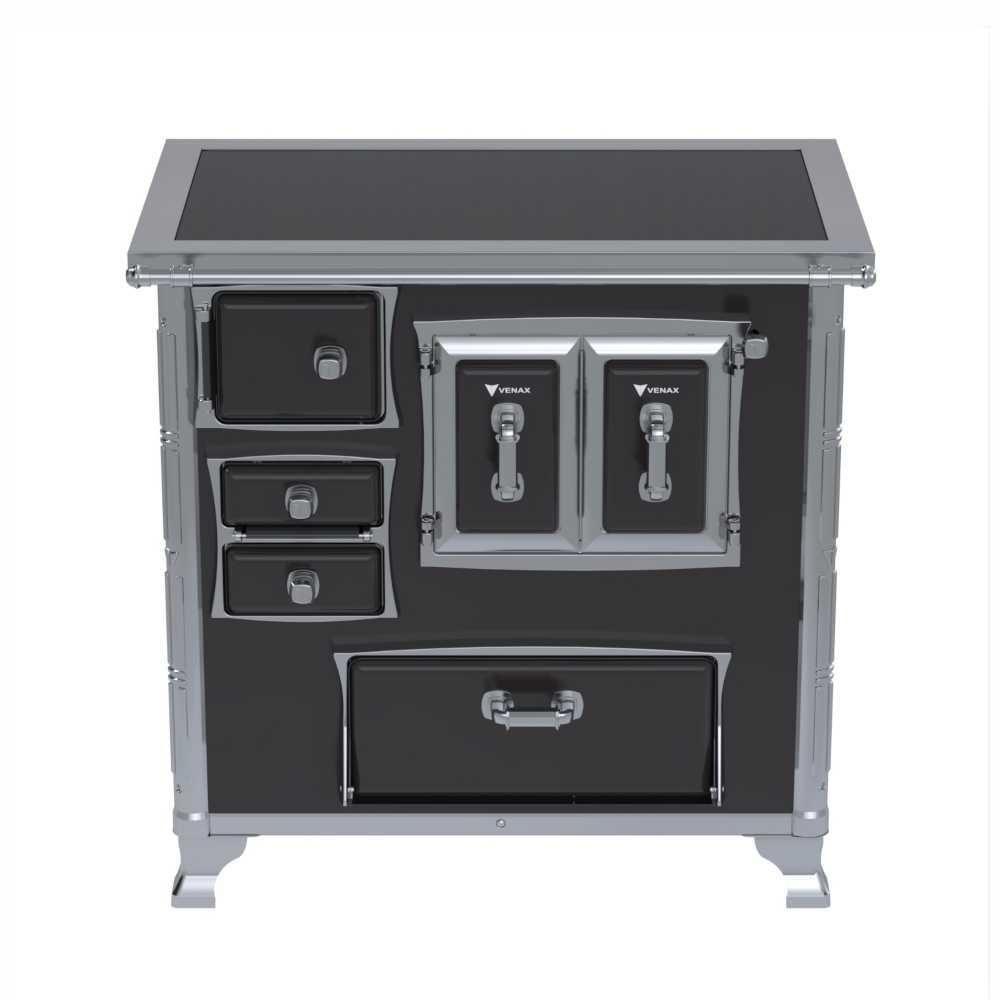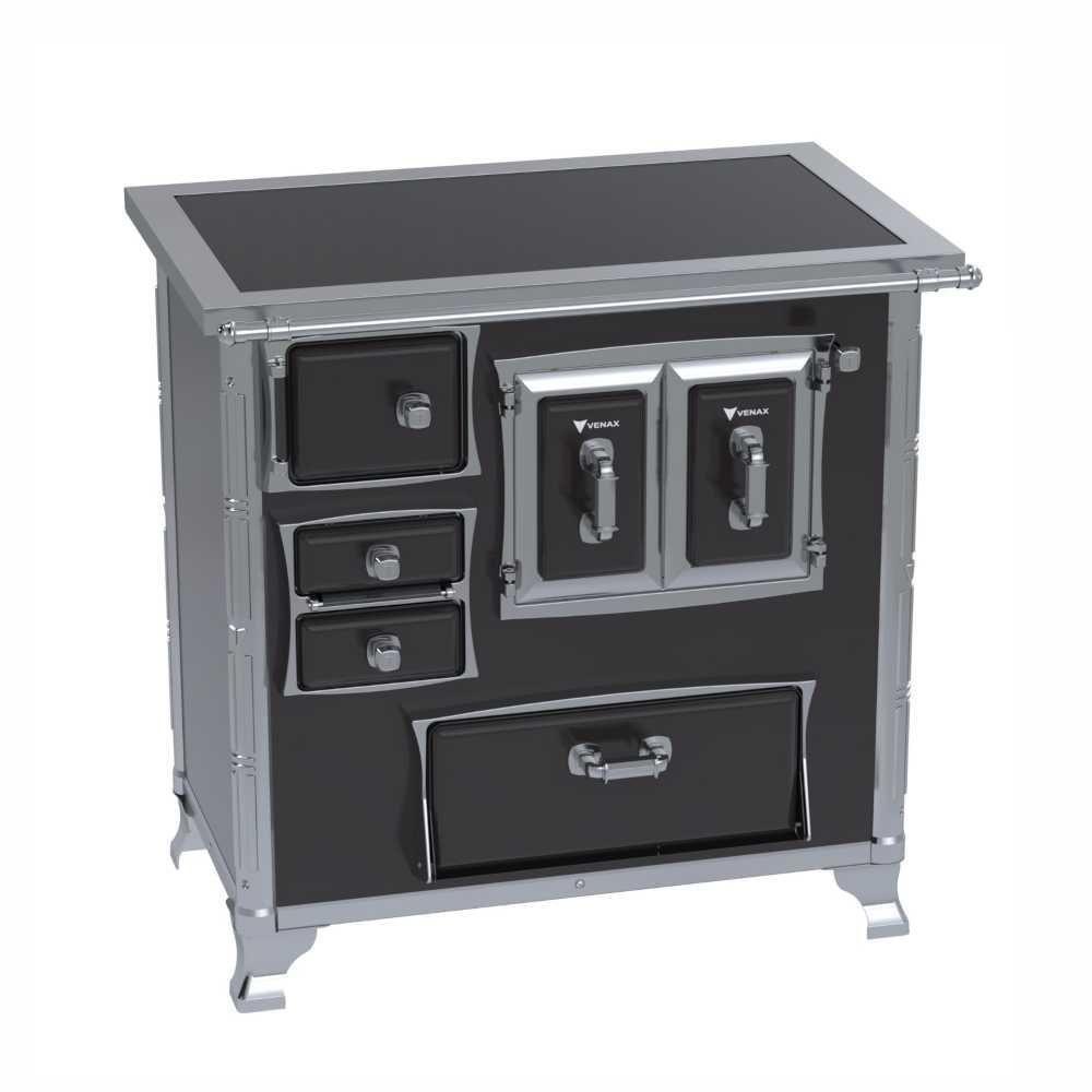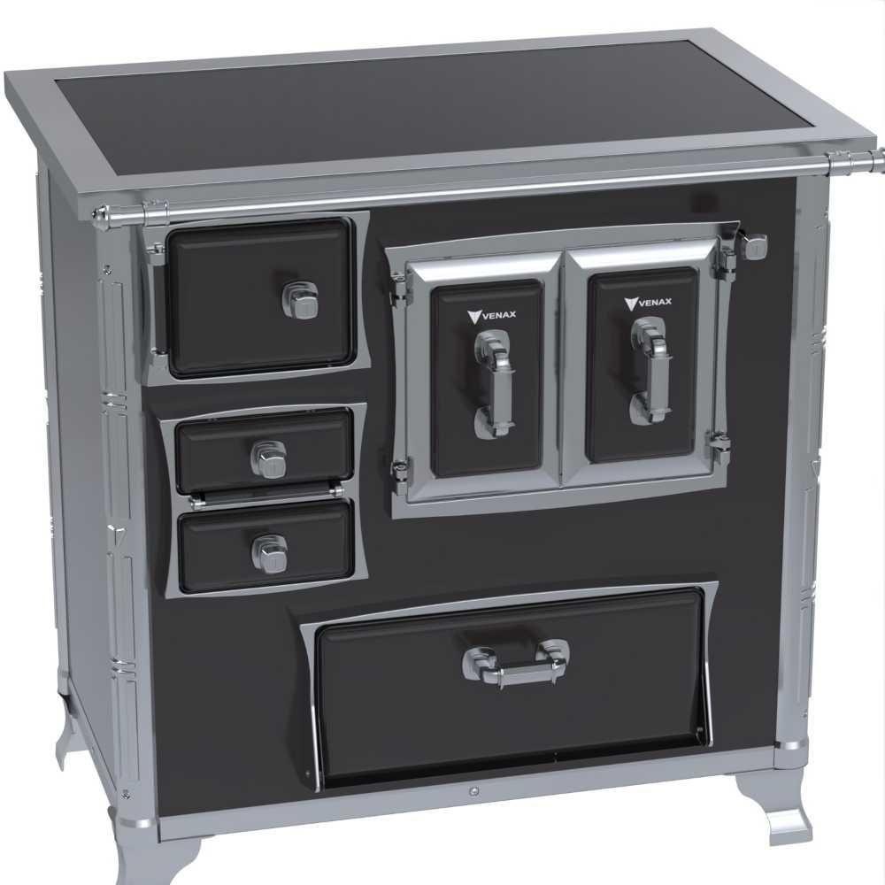 Fogão A Lenha N° 01 Venax Século Xviii Gii Premium Preto Gab. Chapa Vitrocerâmica Saída Direita Sem Tampa