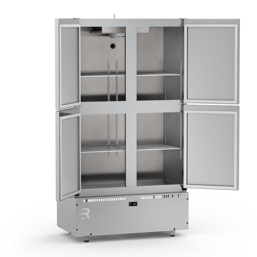 Geladeira Comercial Resfriados 4 Portas Inox Mcr4pi 220V - Refrimate- Temperatura: 0ºC a 7ºC;- Sistema de refrigeração: Ar forçado;- Controlador digital de temperatura;- Gabinete externo em aço inox;- Gabinete interno em aço galvanizado (fundo inox);- Porta com puxador em ângulo de 45º e fechamento automático;- Isolamento térmico em poliuretano injetado;- Prateleiras: Grades aramadas com regulagem de altura;- Pés termoplásticos com regulagem de altura.ESPECIFICAÇÕES:- Modelo: MCR4PI;- Medidas do produto (LxPxA): 1080x595x2000 mm;- Volume: 744 litros;- Consumo: 0,18 kWh;- Temperatura: 0°C a 7°C;- Frequência: 60 Hz;- Tensão: 220V. Voltagem: 220V | Modelo: MCR4PI