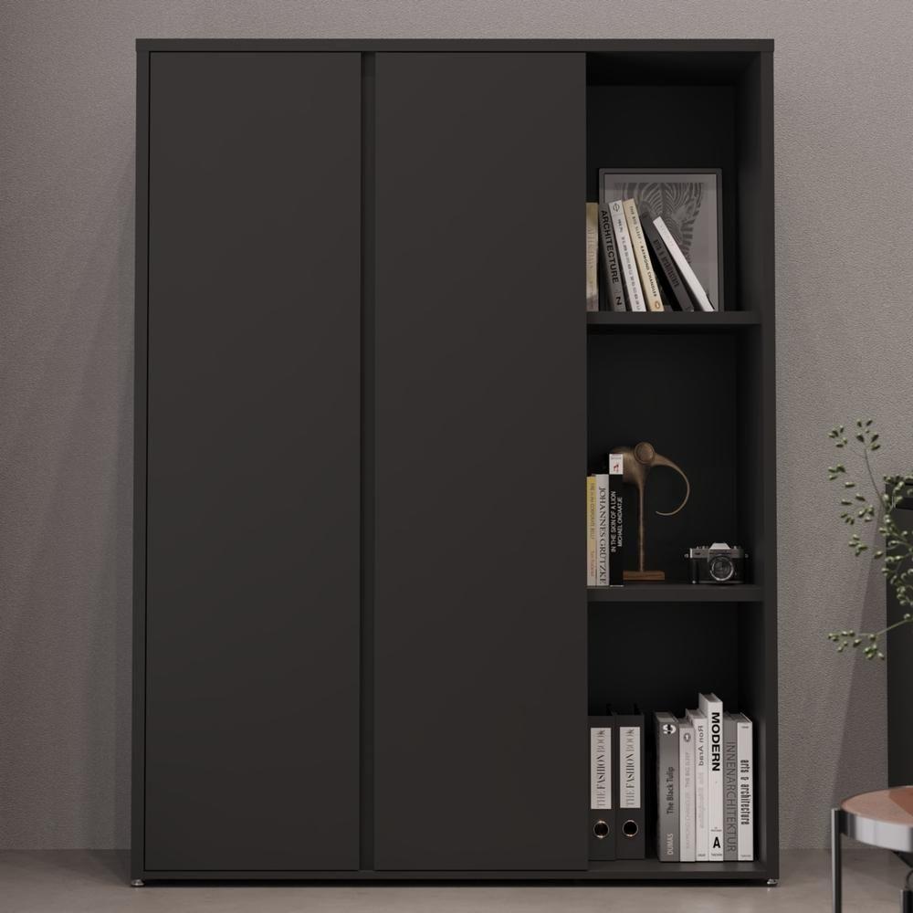 Estante Livreiro Alta Com 9 Prateleiras E 2 Portas Tundra - Preto