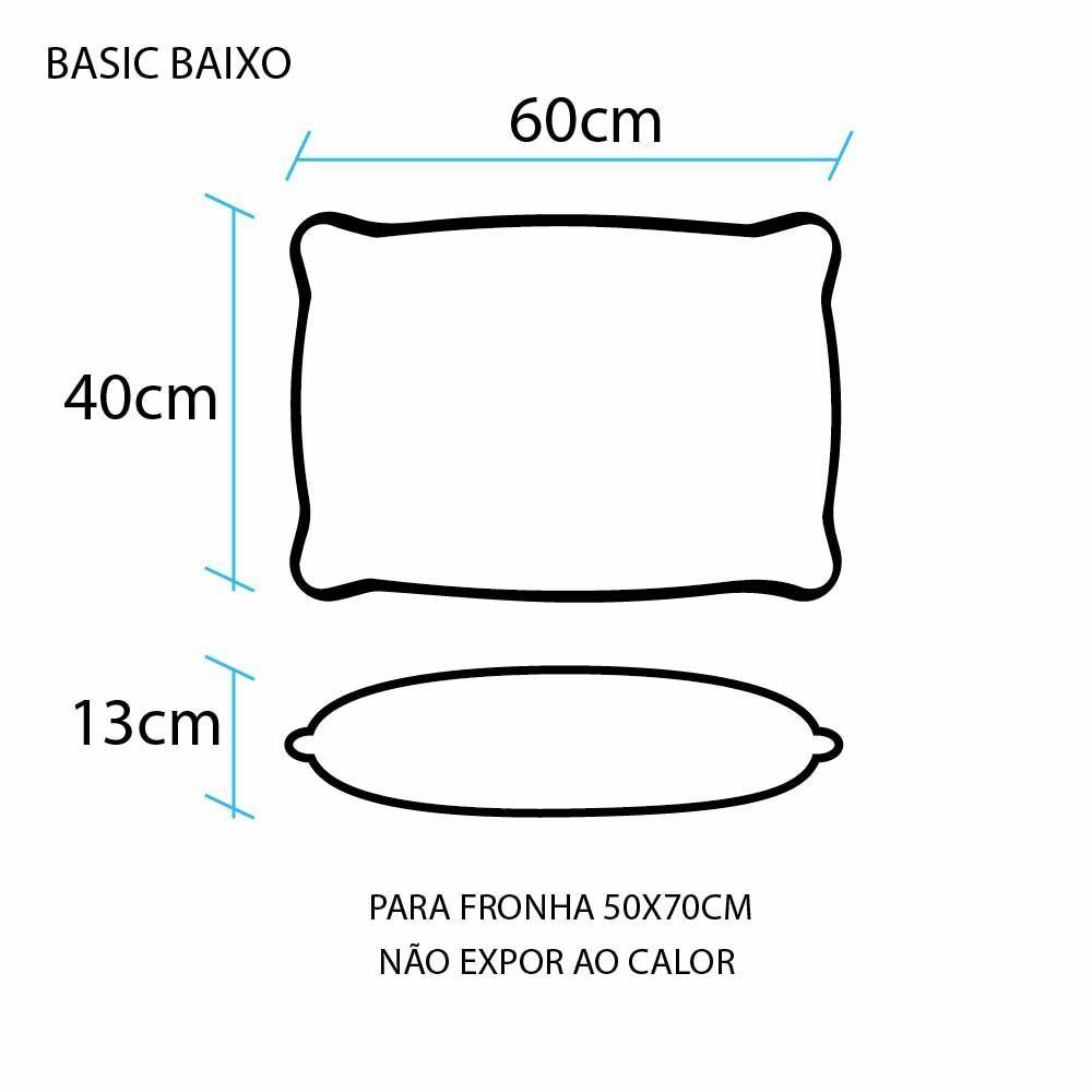 Travesseiro Basic - Flocos De Latex Perfil Baixo 40x60x13cmTRAVESSEIROSAlto desempenho em conforto, 100% de flocos de látex, é o mais indicado por especialistas para a saúde, tanto postural, como respiratória, sendo possível respirar através dele normalmente. é NATURALMENTE hipoalergênico e livre de ácaros, fungos e bactérias. Não precisa expor ao Sol.Reduz a pressão contra o rosto, deixando sua circulação sanguínea livre reduzindo a dormência da orelha e braço, fazendo virar menos durante o sono, alcançando um sono mais profundo.Superior a outros materiais, alta durabilidade e resiliência, volta a forma original imediatamente, não fica rígido durante o uso, mantendo o conforto da maciez durante todo o período.INDICAÇÕESPerfil baixo: Indicado para pessoas que dormem de bruços ou de costas. Também indicado para pessoas que dormem totalmente de lado e possuem ombros curtos, Ou quem dorme sobre o braço.Perfil médio: Indicado para pessoas que dormem totalmente de lado com distância entre ombro e cabeça de 14 a 16cm.Perfil Alto: Indicado para quem dorme abraçado com o travesseiro, ou com uma perna esticada e outra retraída. Também indicado para pessoas que dormem totalmente de lado e possuem ombros largos.CONFORTOPlaca Talalay: Para quem prefere travesseiros leves e macios.Placa Dunlop: Para quem prefere travesseiros mais pesados e mais firmes.Flocos de látex: Para quem prefere travesseiros fofos.CUIDADOS:O látex é uma borracha, não deve expor ao sol para não ressecá-lo, assim como lavar com água quente ou usar secadora.
