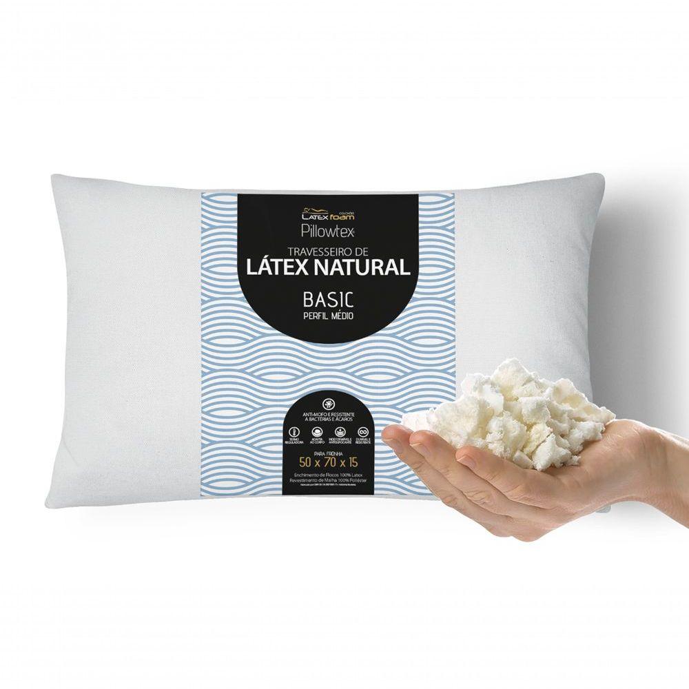 Travesseiro Basic - Flocos De Latex Perfil Mèdio 45x65x15cmTRAVESSEIROSAlto desempenho em conforto, 100% de flocos de látex, é o mais indicado por especialistas para a saúde, tanto postural, como respiratória, sendo possível respirar através dele normalmente. é NATURALMENTE hipoalergênico e livre de ácaros, fungos e bactérias. Não precisa expor ao Sol.Reduz a pressão contra o rosto, deixando sua circulação sanguínea livre reduzindo a dormência da orelha e braço, fazendo virar menos durante o sono, alcançando um sono mais profundo.Superior a outros materiais, alta durabilidade e resiliência, volta a forma original imediatamente, não fica rígido durante o uso, mantendo o conforto da maciez durante todo o período.INDICAÇÕESPerfil baixo: Indicado para pessoas que dormem de bruços ou de costas. Também indicado para pessoas que dormem totalmente de lado e possuem ombros curtos, Ou quem dorme sobre o braço.Perfil médio: Indicado para pessoas que dormem totalmente de lado com distância entre ombro e cabeça de 14 a 16cm.Perfil Alto: Indicado para quem dorme abraçado com o travesseiro, ou com uma perna esticada e outra retraída. Também indicado para pessoas que dormem totalmente de lado e possuem ombros largos.CONFORTOPlaca Talalay: Para quem prefere travesseiros leves e macios.Placa Dunlop: Para quem prefere travesseiros mais pesados e mais firmes.Flocos de látex: Para quem prefere travesseiros fofos.CUIDADOS:O látex é uma borracha, não deve expor ao sol para não ressecá-lo, assim como lavar com água quente ou usar secadora.