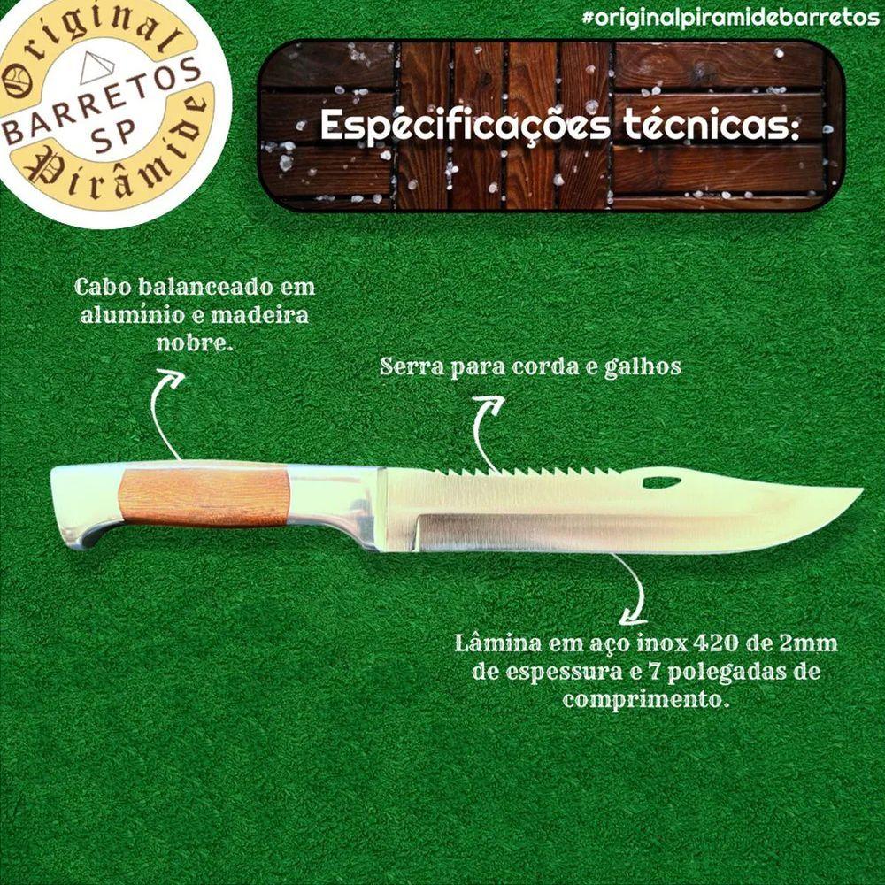 Faca Caca E Pesca De 7DESCRIÇÃO:A Faca Caça e Pesca de 7 é uma ferramenta artesanal projetada especificamente para entusiastas de atividades ao ar livre, como caça e pesca. Com uma lâmina de 7 polegadas e 2mm de espessura, esta faca combina robustez e precisão. A lâmina de aço inoxidável de alta qualidade oferece resistência excepcional à corrosão e durabilidade superior. Além disso, o serrilhado nas costas da lâmina proporciona versatilidade, tornando-a ideal para uma variedade de tarefas, desde corte até serragem.O cabo, feito de uma combinação de alumínio e madeira, proporciona uma pegada segura e confortável, permitindo um controle preciso durante o uso. Este design ergonômico assegura que a faca seja fácil de manusear, oferecendo uma experiência de uso superior. Compatível com bainhas de 7 (exceto as de cozinha), esta faca é uma adição valiosa para qualquer kit de ferramentas de caça e pesca, destacando-se tanto pela funcionalidade quanto pela estética.A Faca Caça e Pesca de 7 é um tributo à habilidade artesanal, combinando alta performance com um design elegante. Seja para uso diário em atividades ao ar livre ou para situações específicas de caça e pesca, esta faca atende às necessidades dos mais exigentes usuários, tornando-se uma peça essencial para quem valoriza qualidade e sofisticação.DADOS TÉCNICOS: Comprimento Total: 29 cmComprimento da Lâmina: 17,5 cmComprimento do Cabo: 12 cmLargura: 2,2 cmAltura: 3 cmEspessura da Lâmina: 2 mmPeso: ≅ 167 gramasITENS INCLUSOS:1 Faca CP de 7