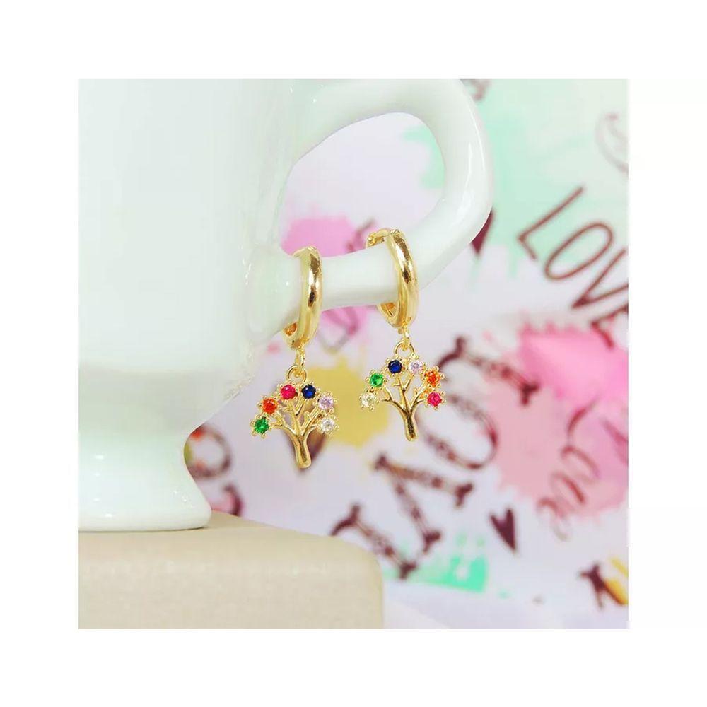 Brinco Argolinha De Arvore Da Vida Folheado Em Ouro 18k