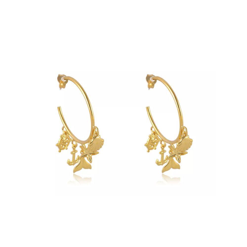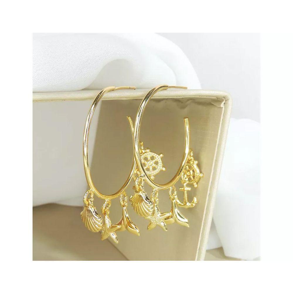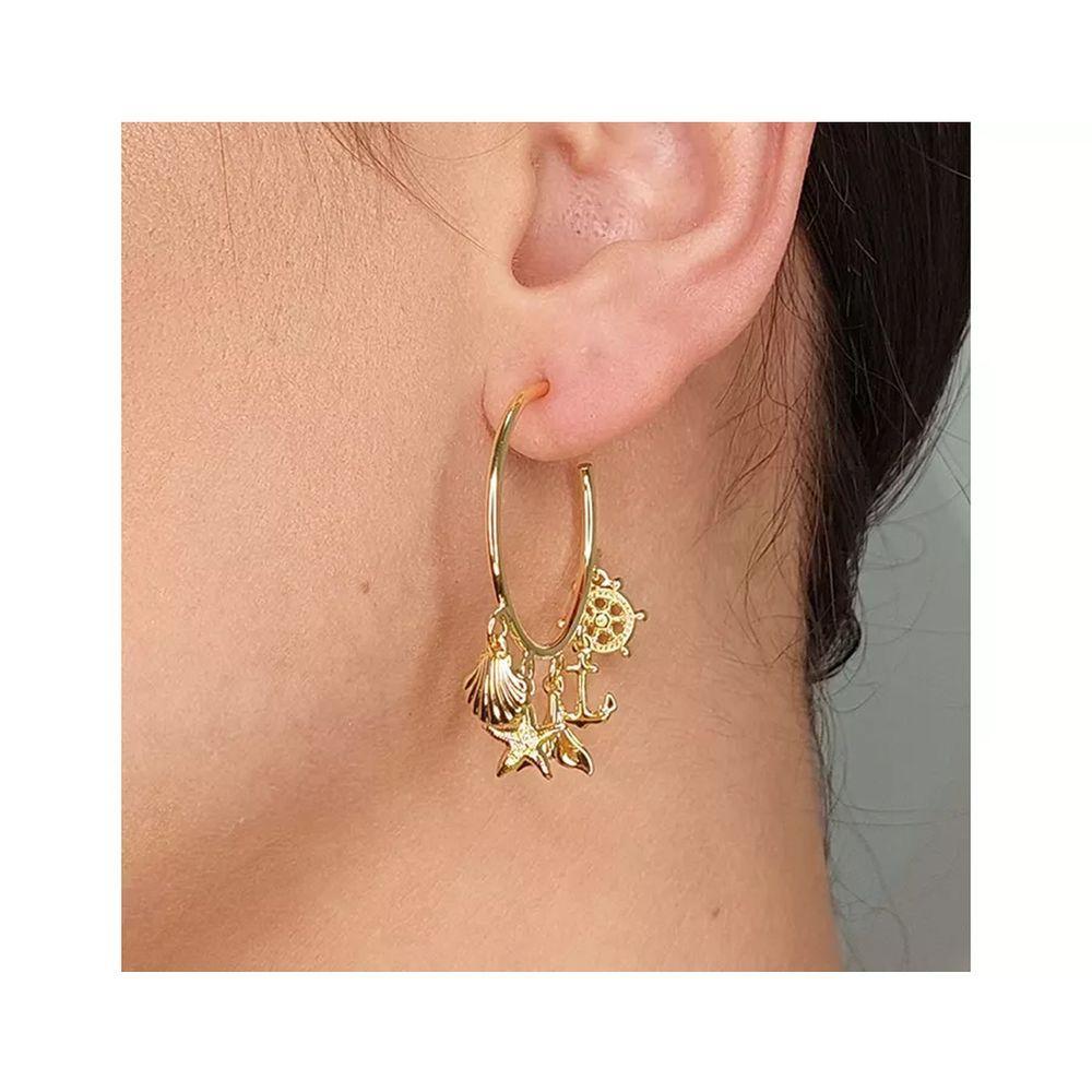 Brinco Argola Médio Com Pingente Marinho Folheado