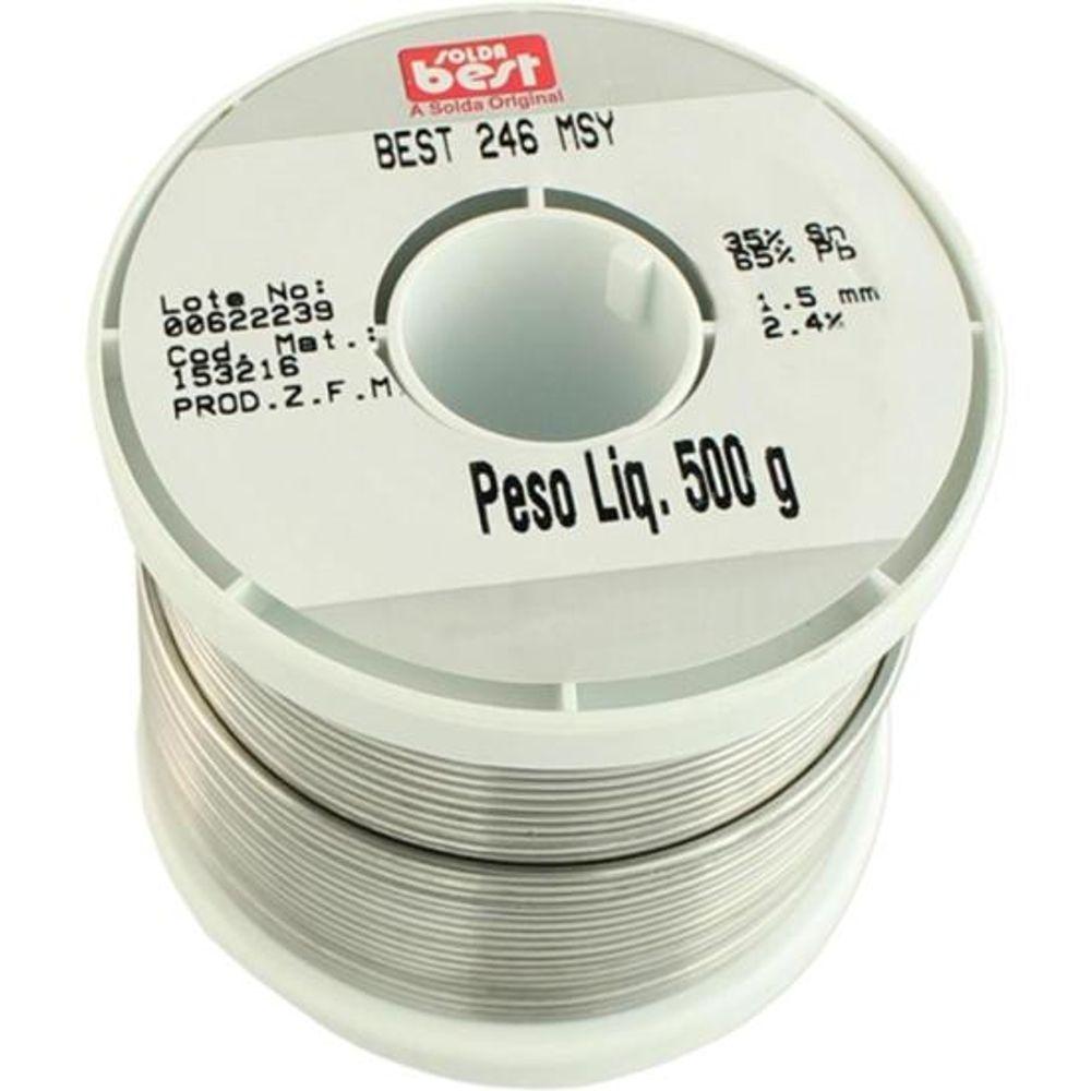 Solda Em Fio 246-msy15 35x65 500g Cinza BestA BEST tem tradição de mais de 35 anos no mercado eletro-eletrônico e seu processo de fabricação foi inovado através de tecnologias do Grupo Cookson.A Solda Best, produto resultante dos mais modernos procedimentos e pesquisas na área de soldas, é suportada por um rigoroso processo de controle de qualidade. Esta Solda é especialmente indicada para atender a indústria eletro-eletrônica.Confira!Material:EstanhoAplicação:Soldagem manual de conexões eletrônicasTipo:Solda em Fio