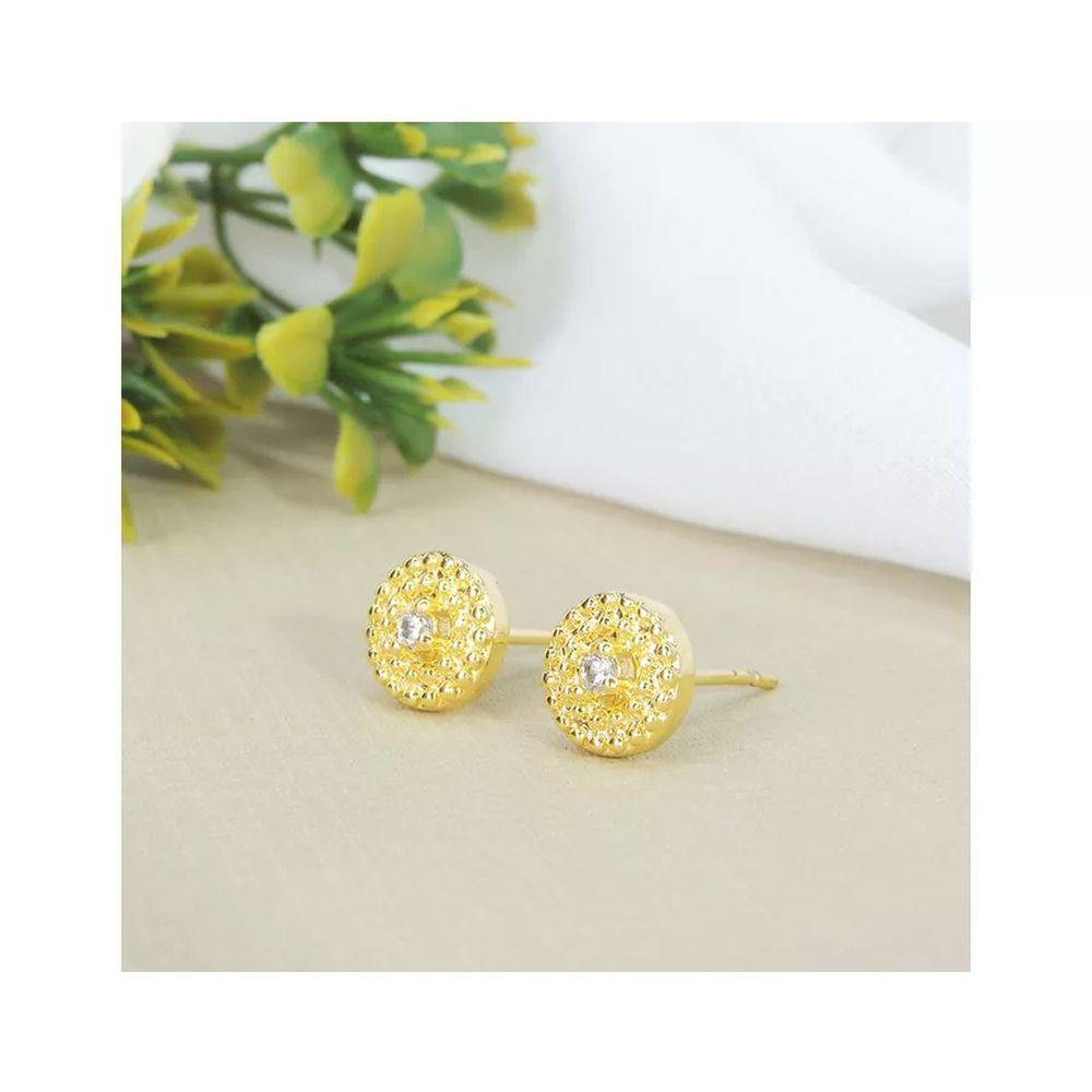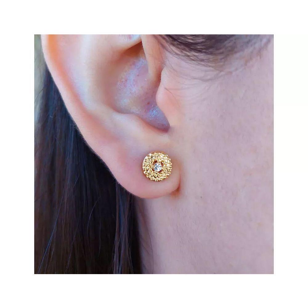 Brinco Círculo Pequeno Com Zircônia Central Folheado Em Ouro 18k