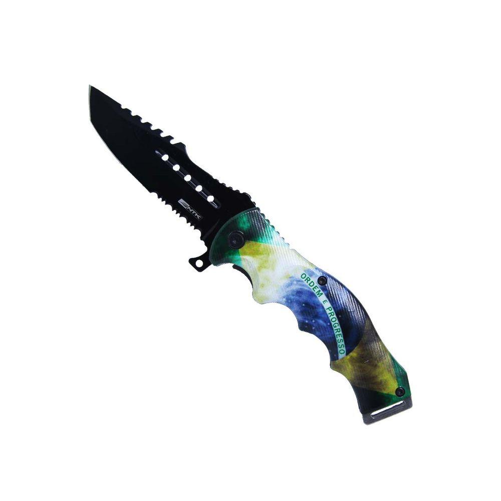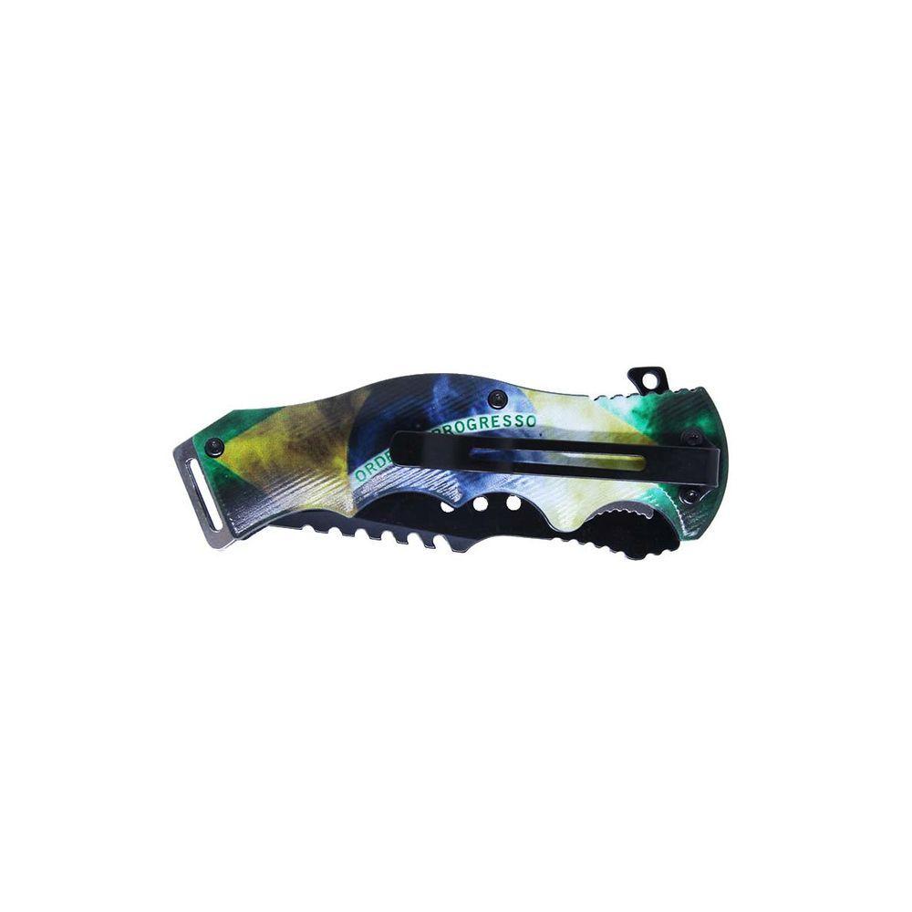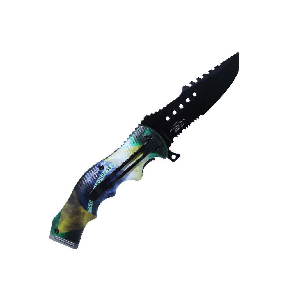 Canivete Patriota Tag Com Trava De SegurançaDESCRIÇÃO:O Canivete Patriota TAG é um modelo inspirado na bandeira do Brasil, projetado para oferecer praticidade, leveza e facilidade de uso em situações de emergência e sobrevivência.Com acabamento exclusivo e durável, é indispensável para praticantes de pesca, esportes radicais, resgate, entre outros. Sua lâmina em aço inoxidável possui corte dos dois lados, garantindo eficiência em diversas situações. Além disso, conta com trava de segurança para maior segurança durante o uso.Os orifícios na parte superior permitem que o canivete seja amarrado em mochilas, cintos ou até mesmo na calça, garantindo fácil acesso quando necessário.DADOS TÉCNICOS: Material: Polímero e aço inoxidávelDimensões: Cabo: 12,7cm | Lâmina: 8,7cmPeso: 170gMarca: TAGITENS INCLUSOS: 1 Canivete