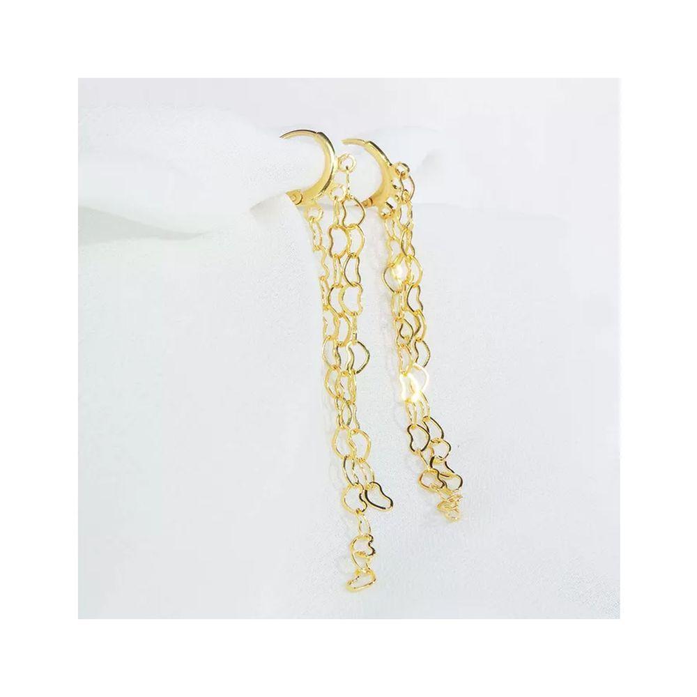 Brinco Argolinha Com Corrente De Coração FolheadoDESCRIÇÃO:É um modelo lindo, que além de ser versátil é perfeito para todas ocasiões, desde uma reunião até um jantar depois do serviço.O acessório romântico lhe traz uma essência harmoniosa e marcante.Esse brinco de argola pequena pode ser usado como um acessório principal ou secundário, você tem essa liberdade para usá-lo da maneira que achar melhor.Uma combinação perfeita para esse brinco é com a Pulseira de Fecho Regulável de Corrente Trabalhada, deixando o seu look mais delicado e harmonioso.DADOS TÉCNICOS:Diâmetro: 1cm.Material: banhado em ouro 18kDica: para manter sua peça sempre com brilho evite o contato dela com lugares úmidos e molhados, exemplo piscinas, mar e durante o banho.Esse acessório é hipoalergênico e níquel freeITENS INCLUSOS:1 Par de Brincos