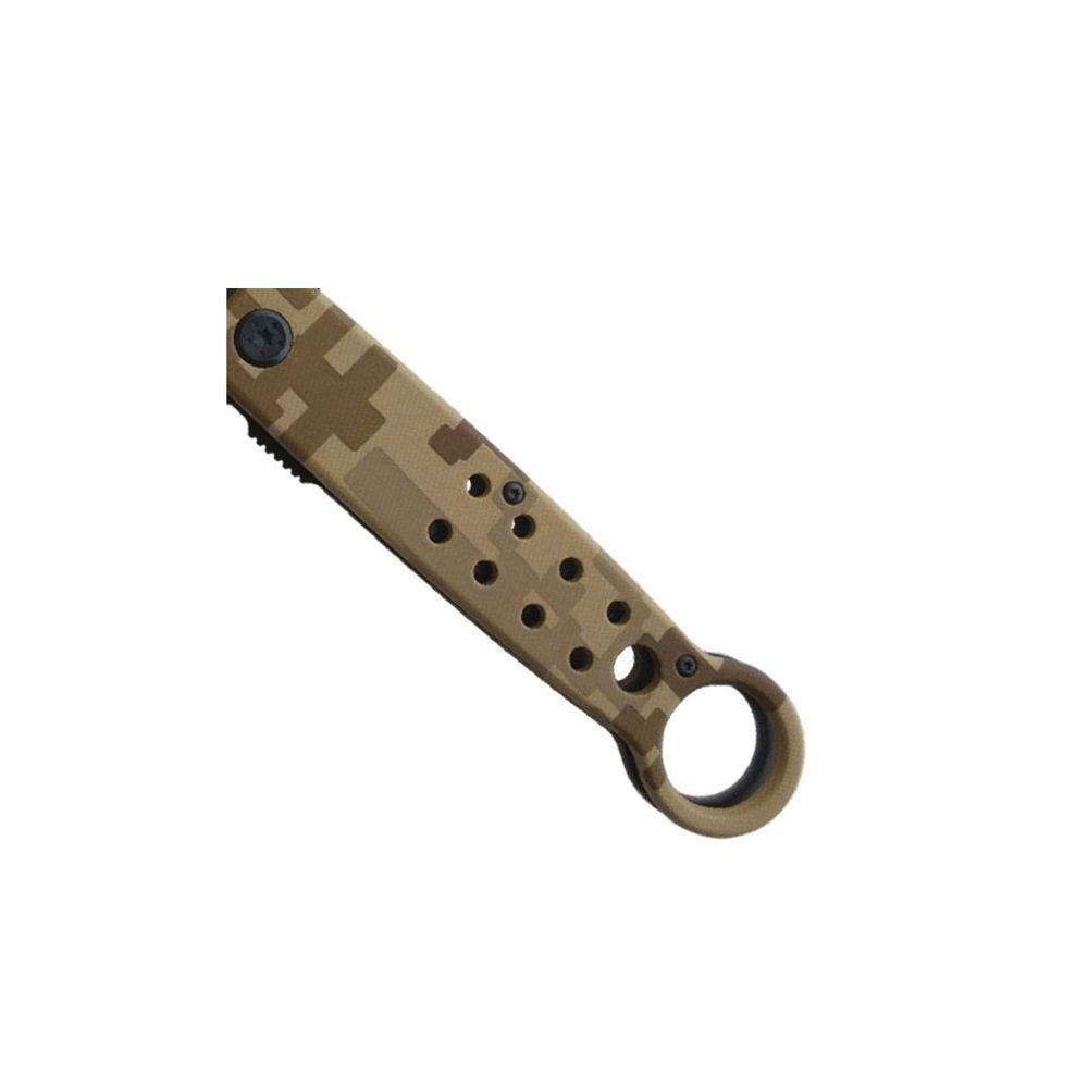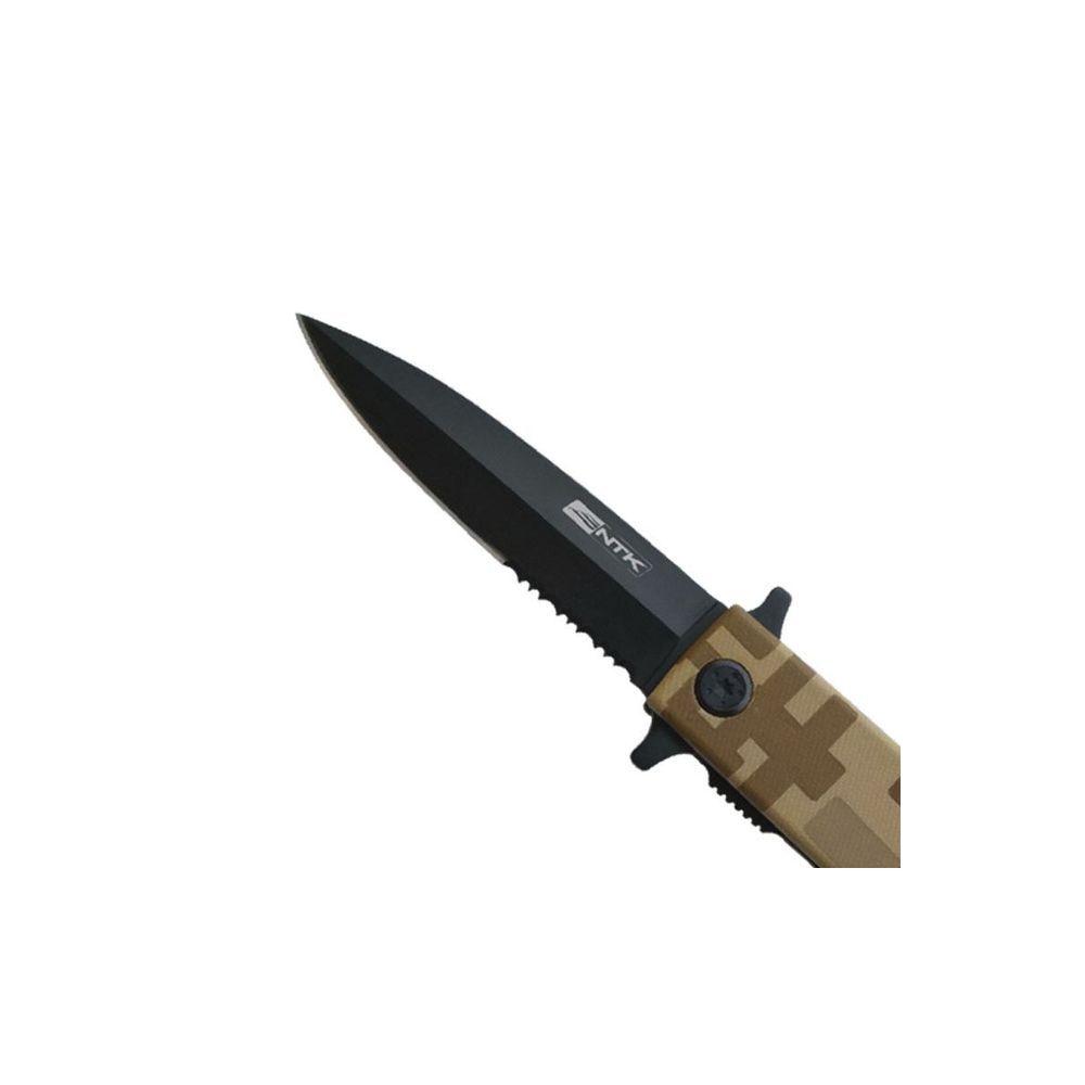 Canivete Intrepid Tag Com Bainha De NylonDESCRIÇÃO:O Canivete Intrepid TAG é um companheiro confiável em suas aventuras ao ar livre, oferecendo praticidade e funcionalidade em um design moderno e único. Com sua pintura em camuflado digital e lâmina na cor cinza preta, este canivete se destaca pela sua estética moderna. Fabricado com lâmina Drop Point Serrilhada em aço inoxidável 420 com extra cromo e corpo em polímero, é resistente e leve.Possui uma pequena argola na empunhadura para uma pegada firme, além de clip para pendurar na mochila, cinto ou calças. Com trava de segurança para evitar aberturas acidentais e sistema de abertura semiautomático, é uma escolha segura, precisa e durável para suas atividades ao ar livre.DADOS TÉCNICOS: Material: Aço inoxidável 420 com extra cromoDimensões: Aberto: 21,5cm | Fechado: 13cm | Lâmina: 8,5cmPeso: 210gMarca: TAGITENS INCLUSOS:1 Canivete