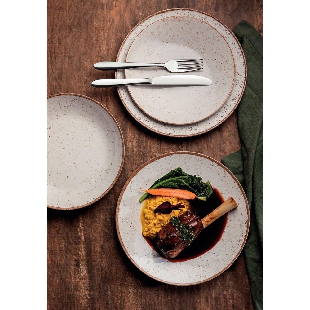 Kit Prato Raso Tramontina Rústico Marrom Em Porcelana Decorada 28 Cm 06 Peças