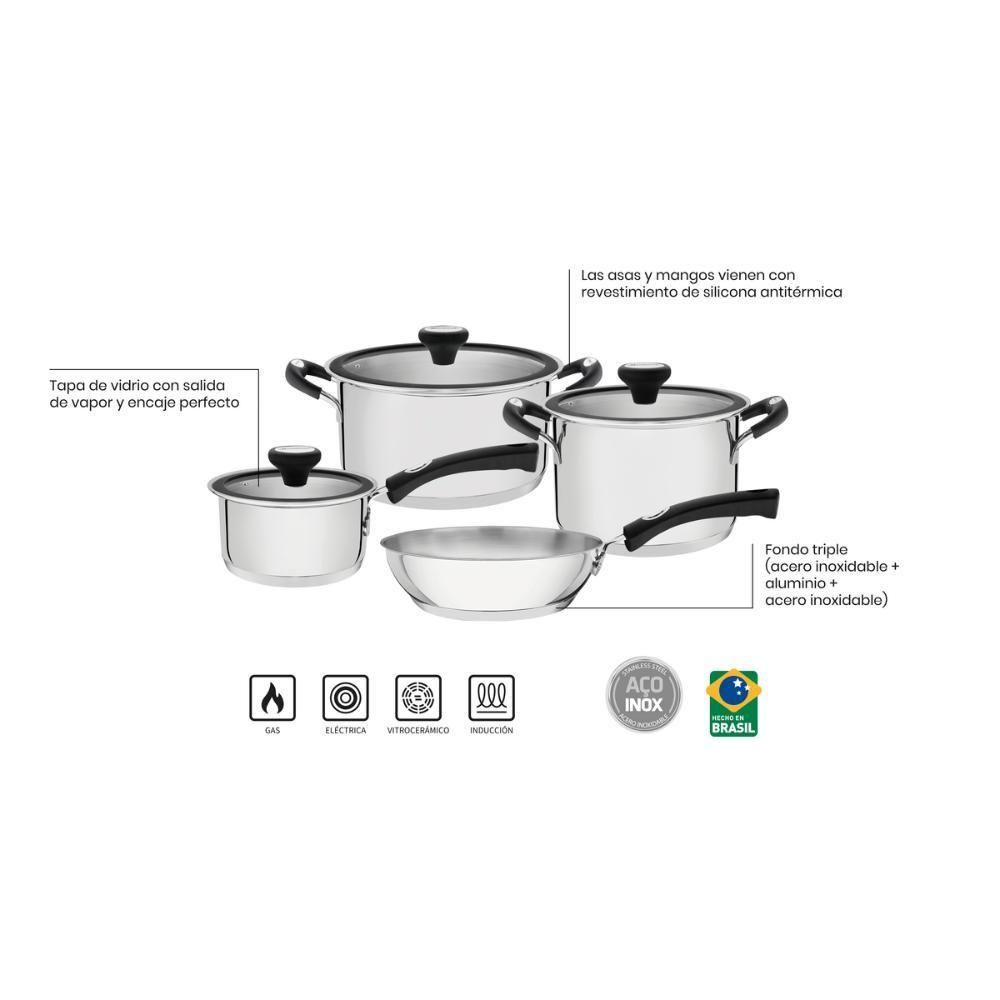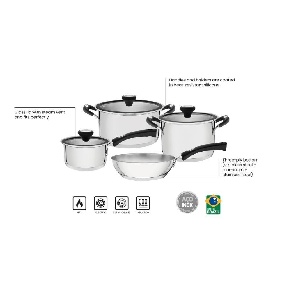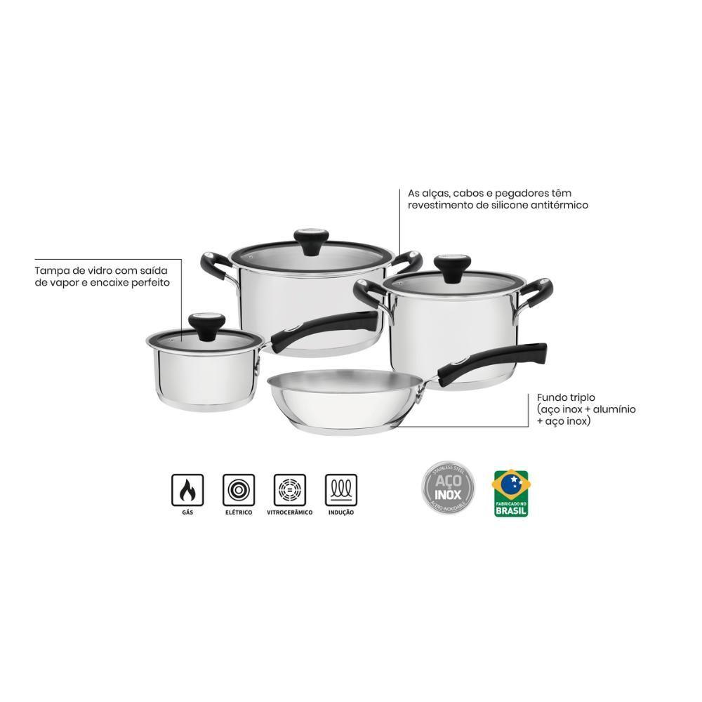 Jogo De Panelas Tramontina Solar Silicone Em Aço Inox 4 Peças