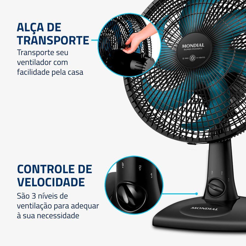 Ventilador De Mesa 30cm Super Power Ii Mondial Preto/azul Petróleo 60W NVSP-30-AP2 110V