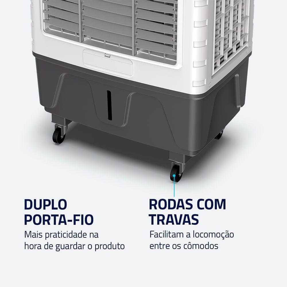 Climatizador Wind Pro Mondial 230W CL-45L 110VMantenha sua casa sempre fresca com o Climatizador Mondial Wind Pro. Com capacidade de 45 litros, ele oferece longa autonomia e reduz a necessidade de reabastecimento constante. O climatizador Mondial reúne cinco funções em um só aparelho: filtra, ventila, circula, umidifica e climatiza o ar, promovendo bem-estar para toda a família.O sistema de oscilação vertical, que é automática, e horizontal, acionado manualmente, permite que o ar seja distribuído uniformemente. Com três velocidades e função climatizar, o fluxo de ar é ajustado conforme sua preferência - de uma brisa leve a um resfriamento mais intenso. Saiba mais sobre o CL-45L Mondial:5 em 1: O climatizador Mondial filtra, ventila, circula, umidifica e climatiza o ar - tudo para melhorar a qualidade do ar no seu dia a dia.Capacidade do Reservatório: Com 45 litros de capacidade e indicador do nível de água, o aparelho oferece maior autonomia e facilidade de uso. Você aproveita um ambiente agradável e refrescante por mais tempo, sem se preocupar com reabastecimentos frequentes.Potência de 230W: Oferece alto desempenho na ventilação e resfriamento, com baixo consumo de energia.Placa Evaporativa Tipo Colmeia: O sistema evaporativo aumenta a eficiência da troca térmica entre a água e o ar, assegurando um ambiente mais fresco e aconchegante.Controle de Velocidade: Com 3 níveis de ventilação e a função climatizar, você ajusta o fluxo de ar de acordo com a sua necessidade.Reservatório Superior: Permite adicionar água e gelo de forma simples e rápida, deixando o local ainda mais agradável nos dias quentes.Função Oscilar: Distribui o ar de forma uniforme e eficiente por toda a área, combinando oscilação vertical, que é automática, com a horizontal, acionada manualmente.Duplo Porta-fio: Mais organização e praticidade na hora de guardar o produto.Design Portátil: Possui rodas para transporte com trava, que facilitam a locomoção de um cômodo para outro.Um Ano de Garantia Mondial: A Mondial é a escolha de milhões de consumidores.Mondial, a escolha inteligente!Marca: MondialModelo: CL-45LCor: Branco / CinzaVoltagem (Tensão): 127V ou 220V (Não é Bivolt)Itens inclusos: 01 Climatizador e 01 Manual de InstruçõesPotência: 230WCiclo: filtra, ventila, circula, umidifica e climatiza.Capacidade do reservatório: 45LReservatório de gelo para resfriamento da água: SimConsumo de energia: 2,3WFunção umidificar: SimFunção oscilar: SimOscilante: SimDimensões do produto: 98cm x 42cm x 61cm (AxLxP)Peso do produto: 14KgComprimento do cabo: 1,50mGarantia: 12 Meses