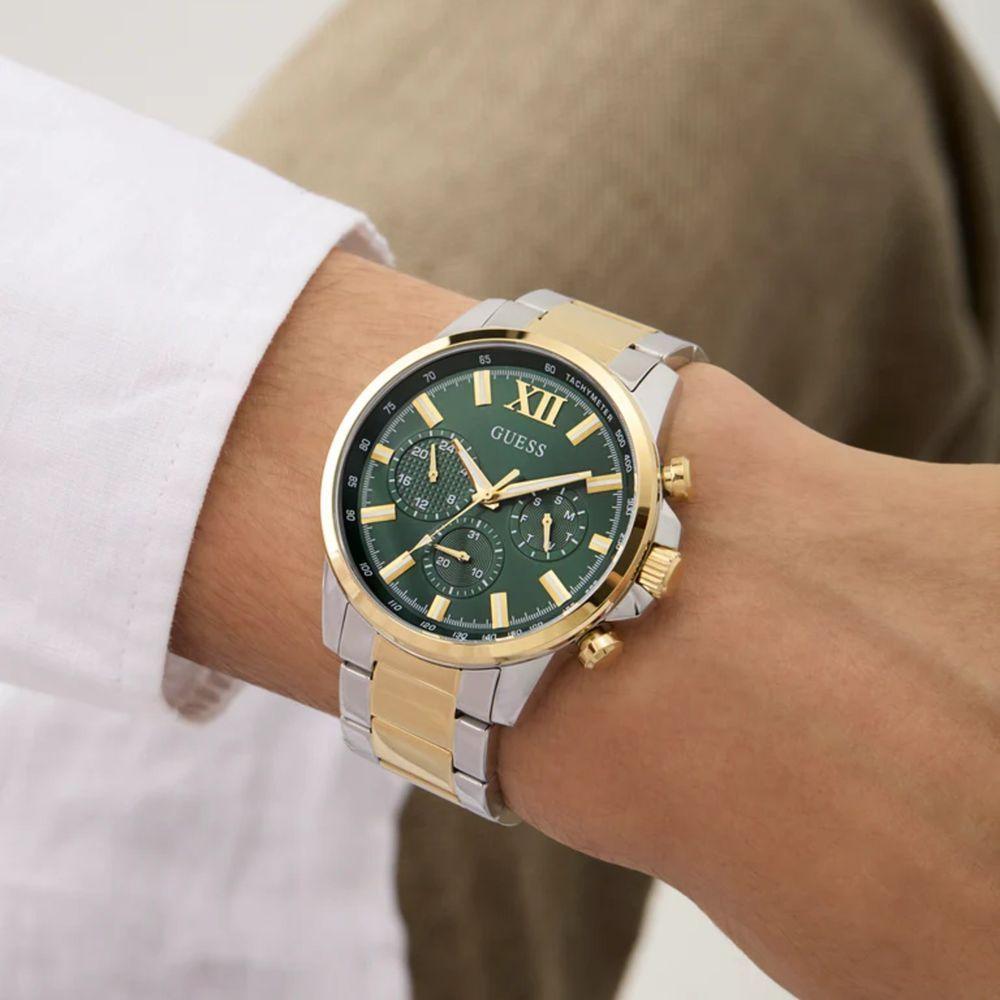 Relógio Guess Masculino Multifunção Gw0900g5 BicolorRelógio Guess Masculino Multifunção GW0900G5 BicolorGuess, a marca Californiana criadas para pessoas que gostam de luxo e elegância! Os Relógios Guess possuem design próprio que realçam sua beleza e seu lifestyle. A linha Guess Masculino tem o conceito de trazer a sofisticação para o Homem moderno.Especificações Técnicas Mecanismo: Analógico (Quartzo) Gênero: Masculino Visor: Verde Vidro: Cristal mineral Prova d'água: 50m Características: Cronógrafo Diâmetro da caixa: 44 mm Garantia: 1 ano pela fabricante GuessRelógio 100% Original, acompanha caixa, manual, certificado de garantia Guess e NF.Somos revendedores oficial e autorizado da GUESS, todos os relógios comercializados pela nossa empresa possuem GARANTIA NACIONAL do FABRICANTE e caso o produto que adquiriu apresente algum defeito durante o período da garantia, basta encaminhá-lo diretamente à assistência técnica mais próxima de sua região, sempre acompanhado do CERTIFICADO de GARANTIA e NOTA FISCAL.
