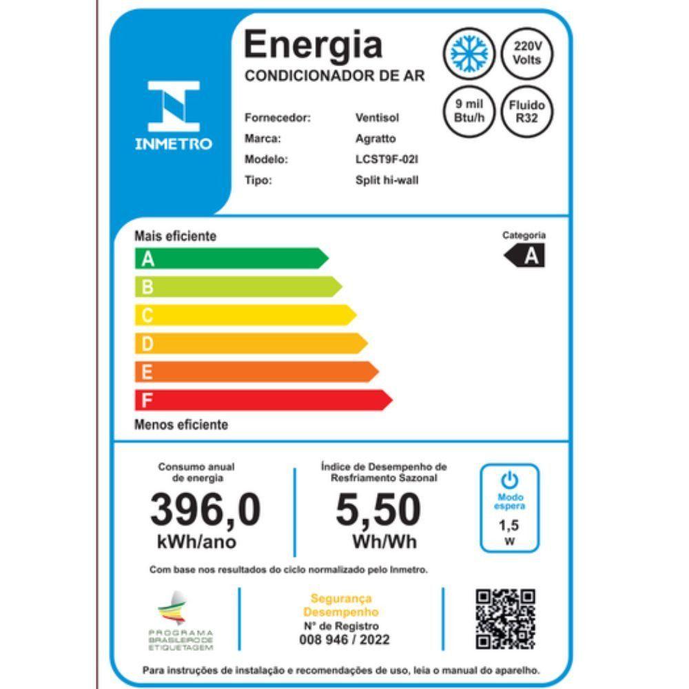 Ar Condicionado Split Agratto Liv Inverter 9.000 Btus Frio Branco 220V