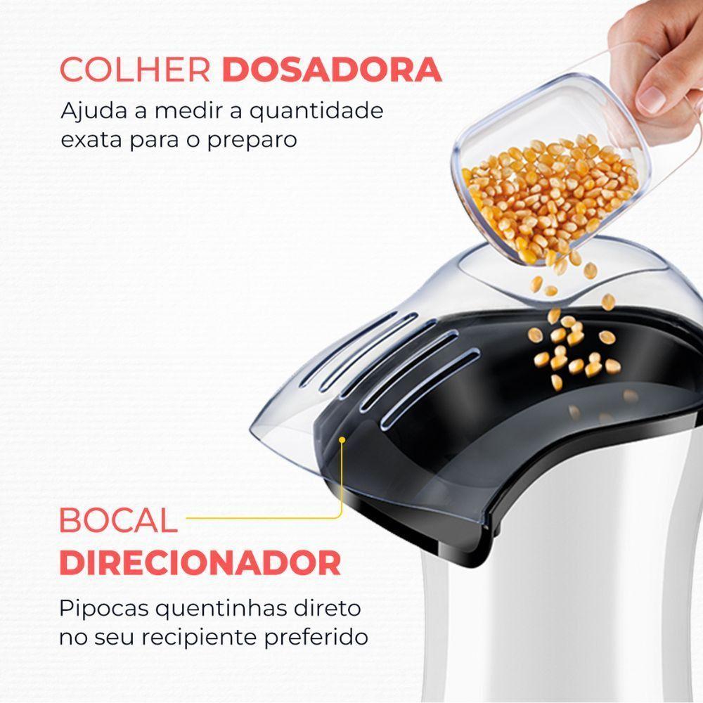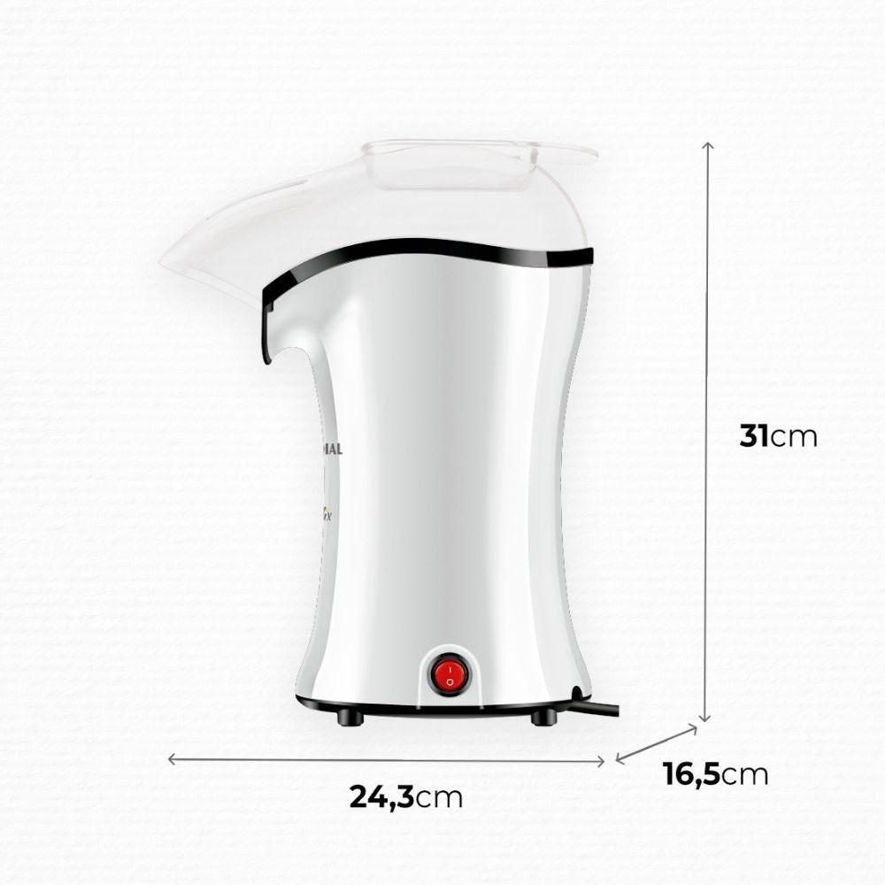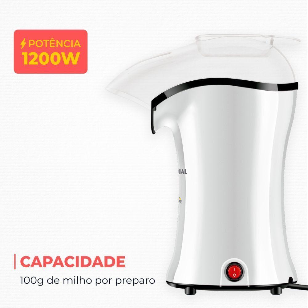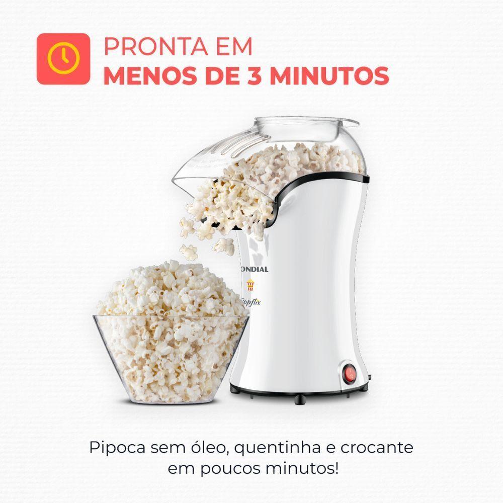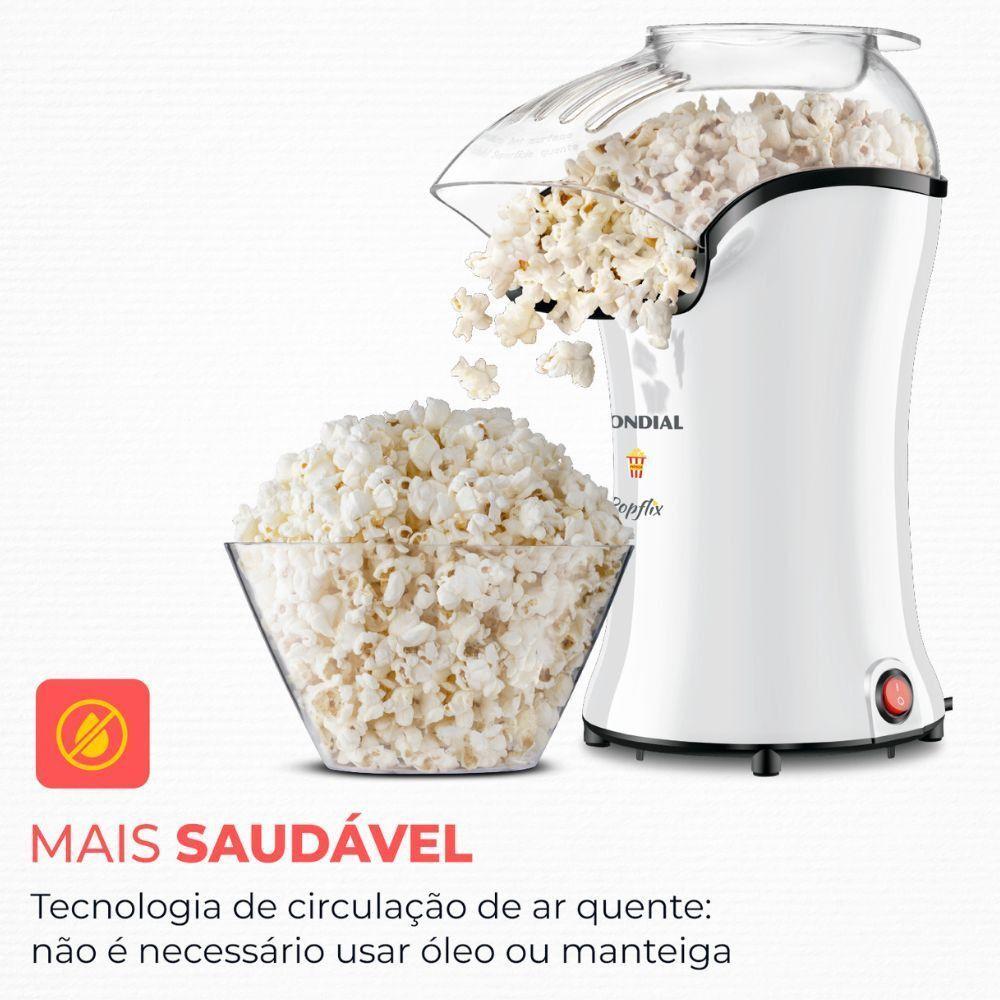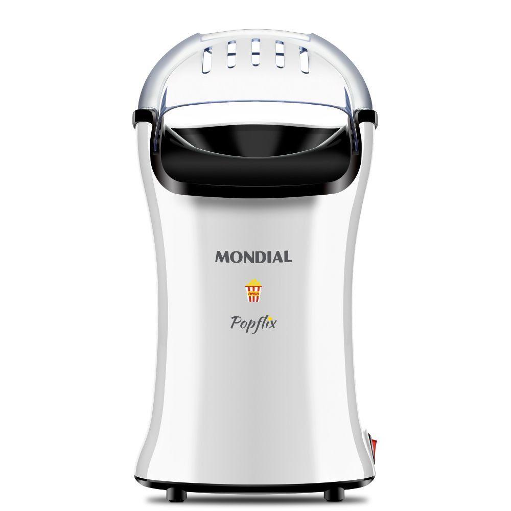 Pipoqueira Elétrica Mondial Popflix Com Bico Direcionador Branco 127 VA pipoqueira Popflix da Mondial proporciona rapidez e praticidade no preparo da pipoca. Basta colocar o milho e ligar o aparelho: em menos de 3 minutos esta pronta! E o melhor: sem adicao de oleo ou outra gordura, pois o aparelho utiliza tecnologia de circulacao de ar quente. Muito mais saudavel, ne?Caracteristicas:PIPOCA PRONTA EM MENOS DE 3 MINUTOS: Voce nem escolheu o filme e a sua pipoca ja esta pronta! Basta colocar o milho e ligar o aparelho: em menos de 3 minutos, a pipoca esta pronta e quentinha.MUITO MAIS SAUDAVEL: SEM OLEO: A pipoqueira Mondial utiliza a tecnologia de circulacao de ar quente para que as pipocas estourem rapidamente. E o melhor: sem a necessidade de usar oleo ou qualquer tipo de gordura.BOCAL DIRECIONADOR: Pipocas quentinhas direto no recipiente de sua preferencia.CAPACIDADE: E de 100g de milho por preparo.COLHER DOSADORA: Te ajuda a medir a quantidade exata para o preparo. E ainda pode ser utilizada como reservatorio para derreter a manteiga ou coberturas especiais com o calor do aparelho, enquanto as pipocas estouram.POTENCIA: 1.200W: O milho estoura rapidamente e a pipoca fica pronta em menos de 3 minutos.+ SEGURANCA: As pipoqueiras Mondial contam com sistema de protecao contra superaquecimento excessivo.COMPACTA E FACIL DE GUARDAR: A Popflix ocupa pouco espaco e possui a funcao guarda-fio, que facilita na hora de armazenar.UM ANO DE GARANTIA MONDIAL: A Mondial e a escolha de milhoes de consumidores. Mondial, a escolha inteligente!Dimensoes:Altura: 31 cmLargura: 23,7 cmProfundidade: 16,5 cmPeso: 0,87 kgGarantia: 12 meses