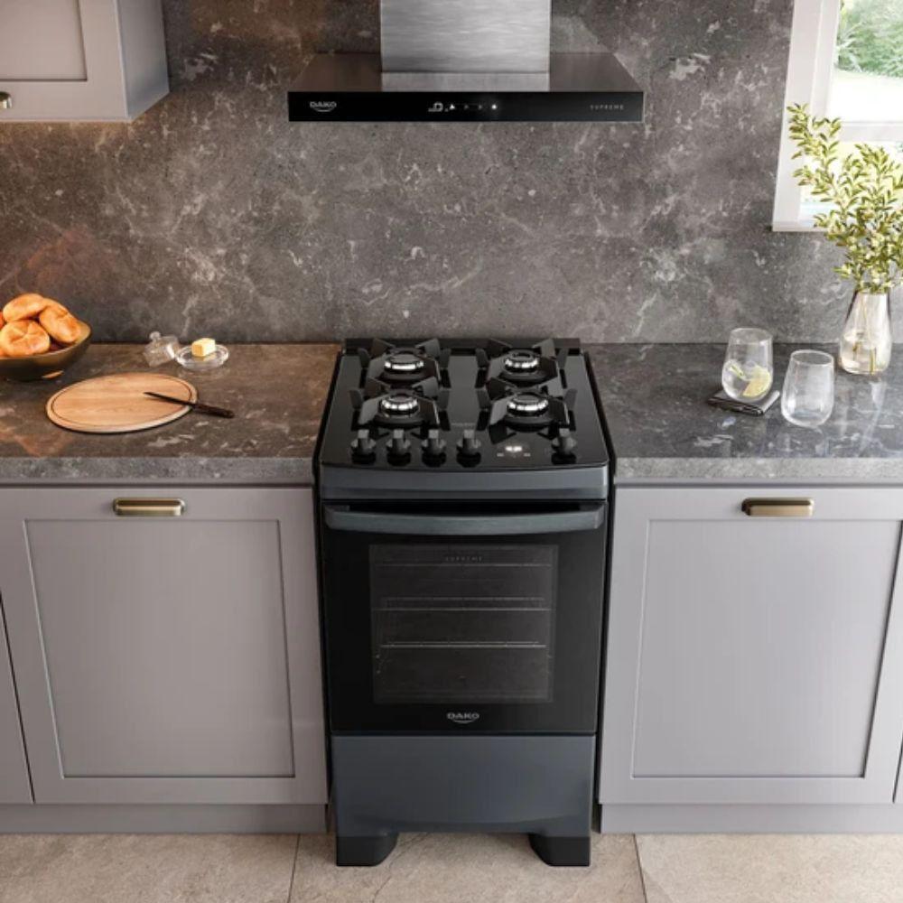 Fogão Dako 4 Bocas Supreme Timer Glass Titanium Bivolt