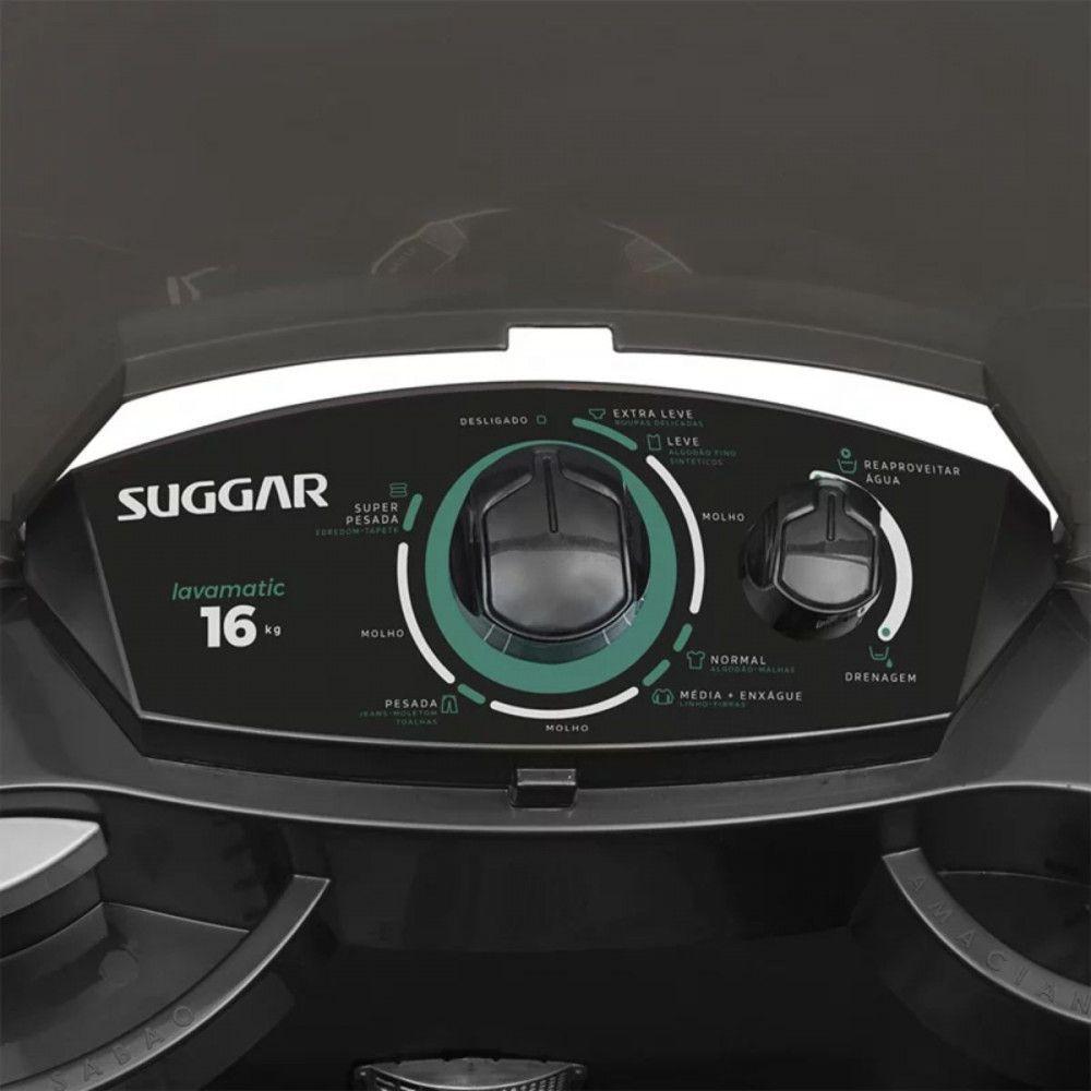Lavadora Lavamatic 16kg LC16 PB Suggar Preto 110VA lavadora Suggar Lavamatic 16kg e um eletrodomestico espacoso e eficiente, ideal para familias maiores ou para quem precisa lavar grandes volumes de roupa de uma so vez.Com capacidade para ate 16 quilos de roupa, oferece praticidade e conveniencia na hora de lavar.Seu design moderno e funcional inclui uma variedade de programas de lavagem para diferentes tipos de tecido e niveis de sujeira, garantindo resultados de limpeza excepcionais.Alem disso, sua eficiencia energetica ajuda a economizar energia durante o uso, tornando-a uma escolha sustentavel para o lar.Modelo:LAVAMATICDiferencial:Potencia: 530WMaior batedor da categoriaLava ate 16kg de roupasSuper capacidade: Lava edredom de casalSistema de drenagemFuncao reaproveitar aguaDimensoes do produto:Altura: 96,1 cmLargura: 51,3 cmProfundidade: 56,7 cmPeso: 10,55 kgGarantia do Fornecedor: 12 meses (Contra defeito de fabricacao a contar do momento da emissao da Nota Fiscal).