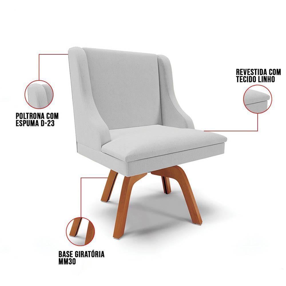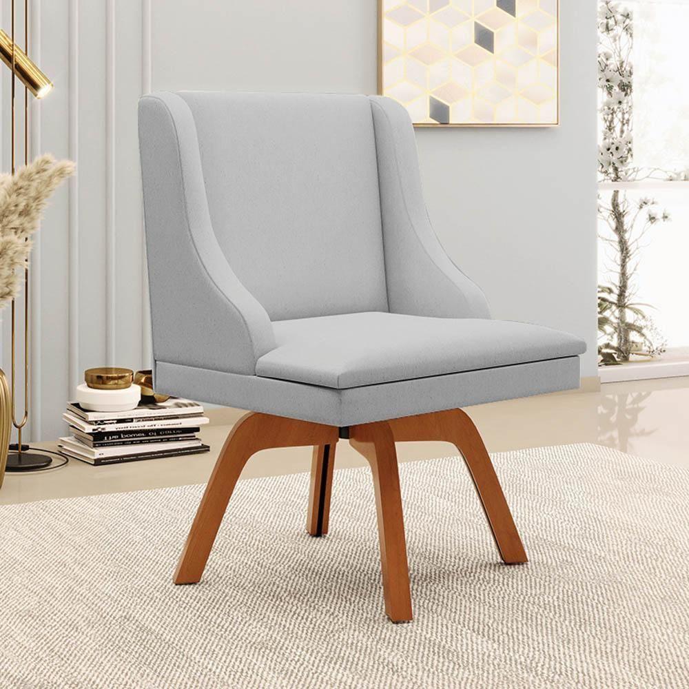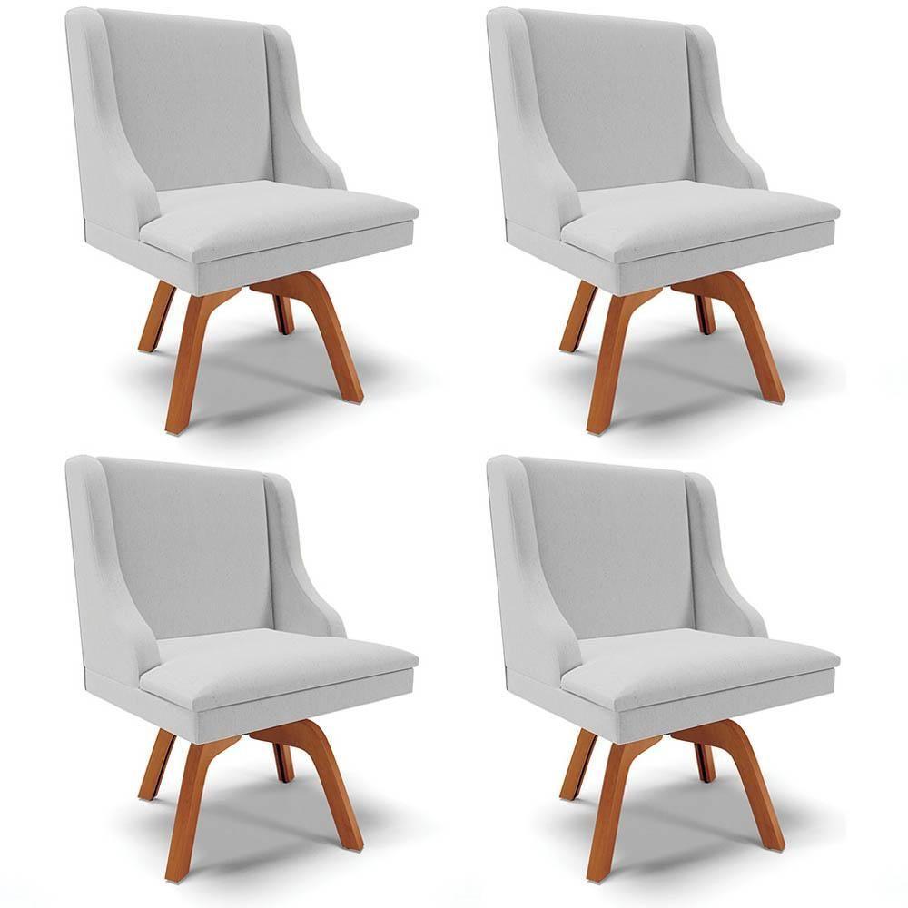 Kit 4 Cadeiras Estofadas Giratória Para Sala De Jantar Lia Linho Cinza - Ibiza