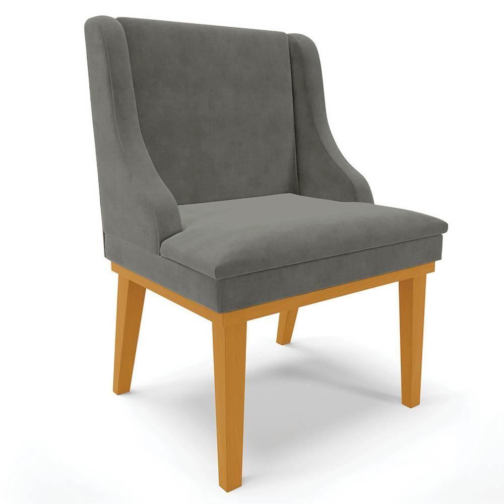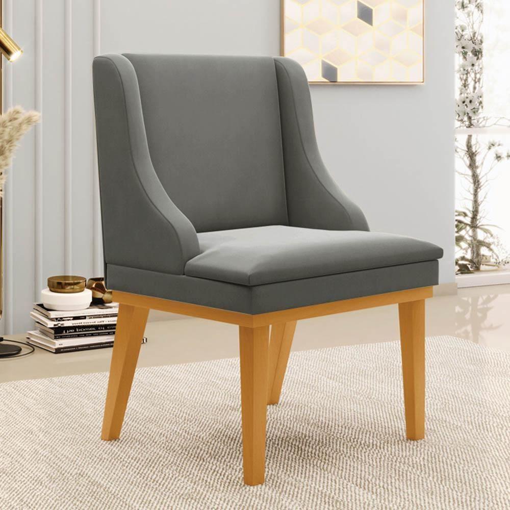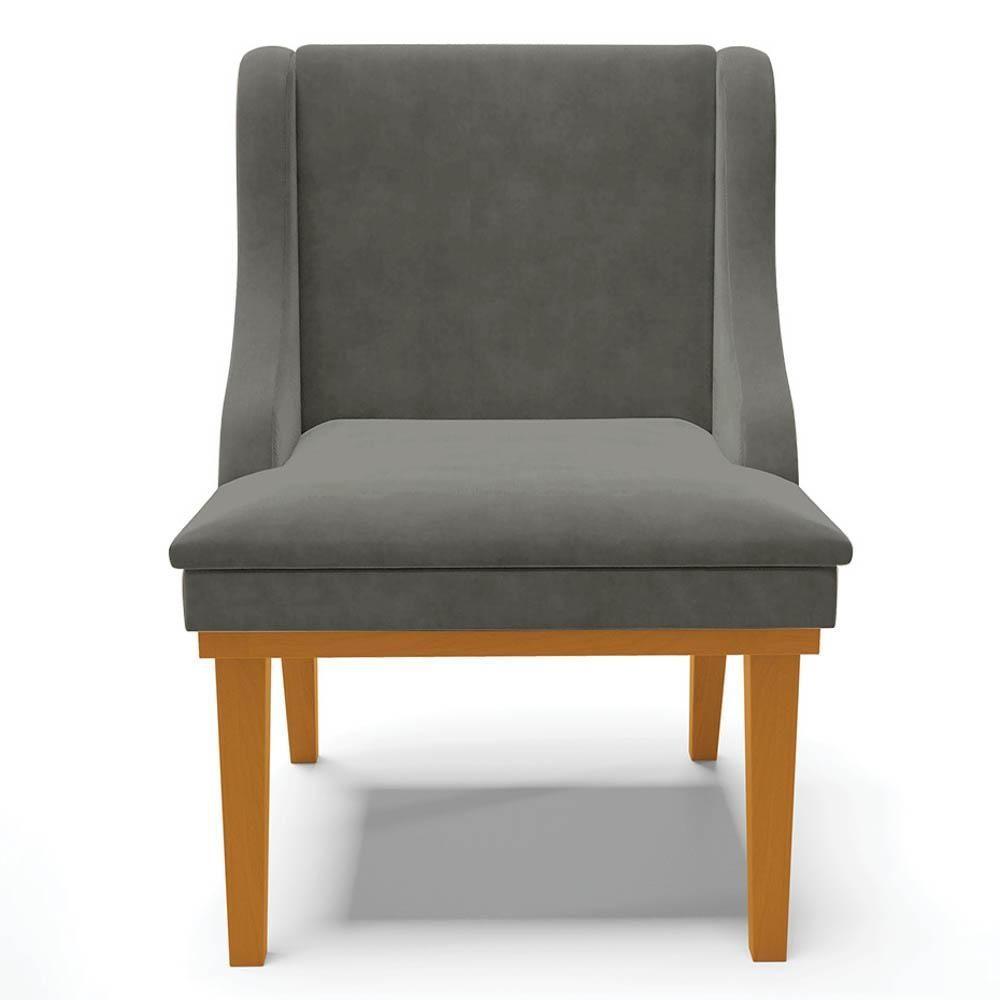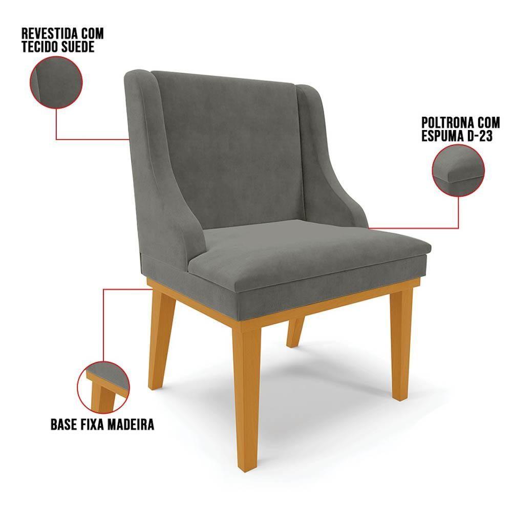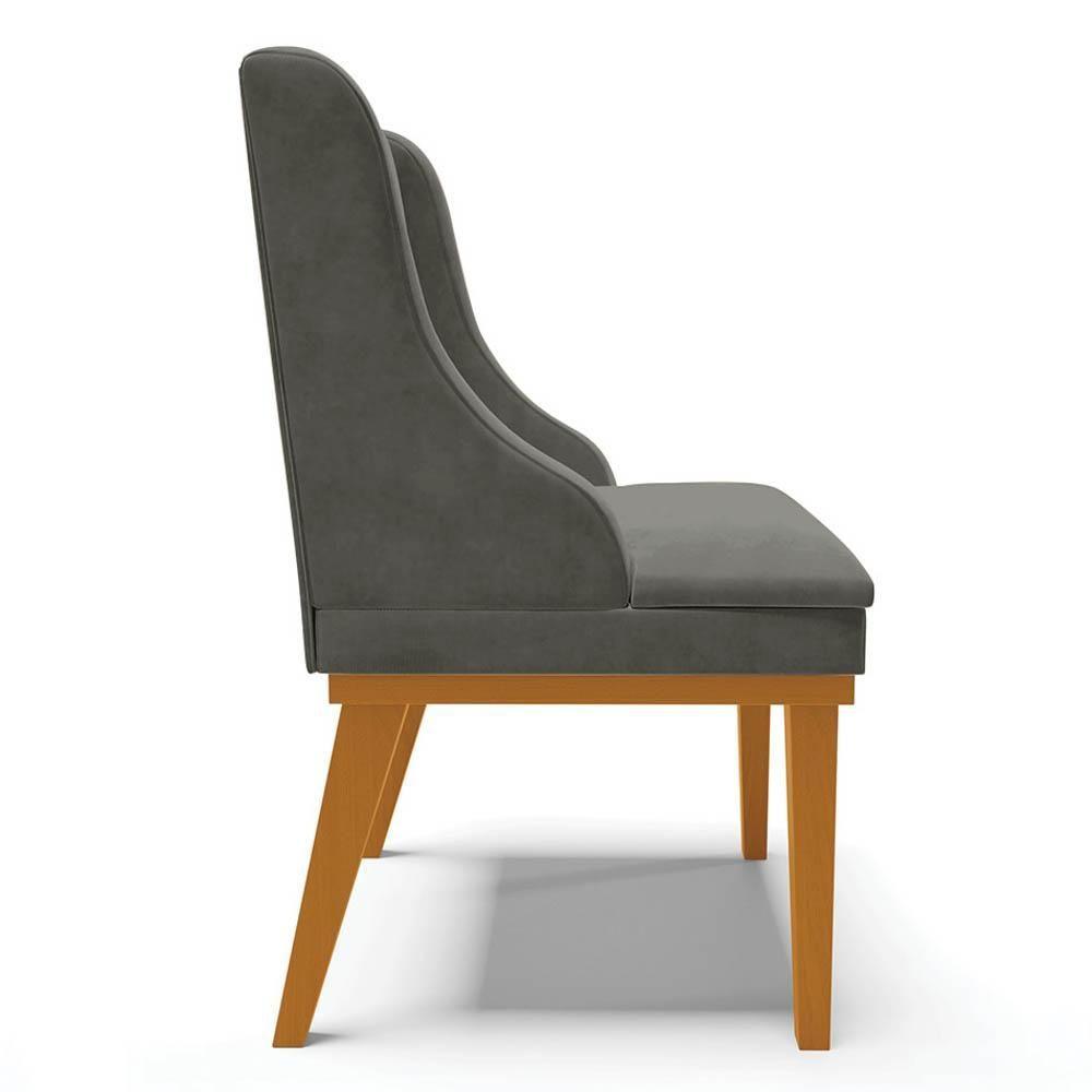 Kit 6 Cadeiras Estofadas Para Sala De Jantar Base Fixa De Madeira Castanho Lia Suede Grafite - Ibiza