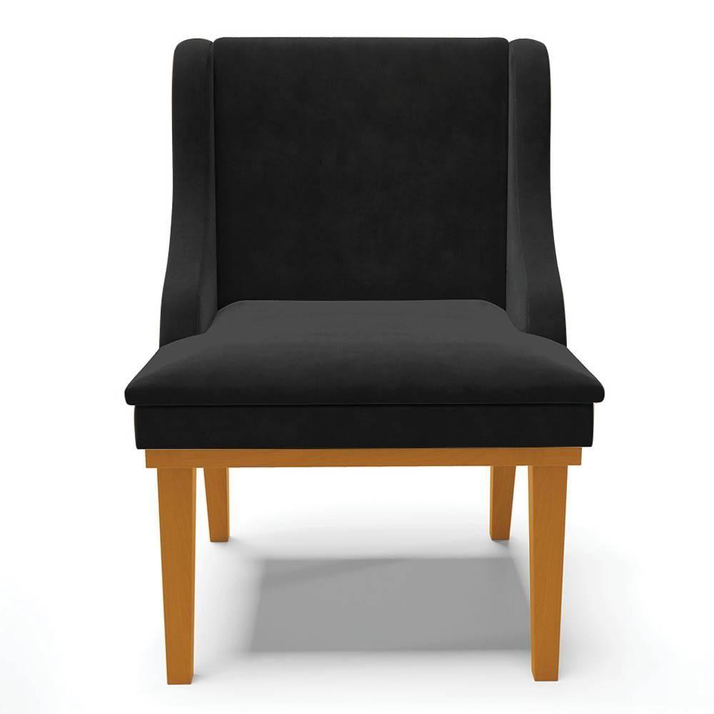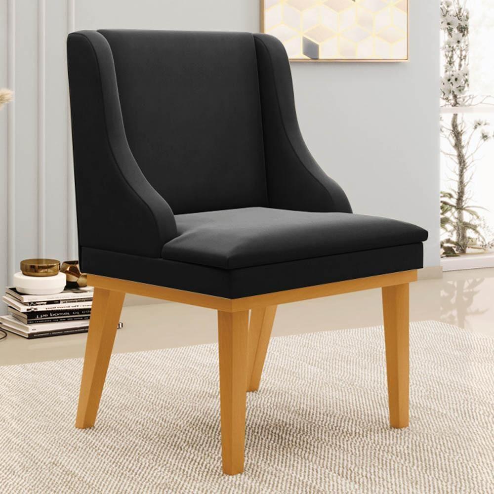Kit 6 Cadeiras Estofadas Para Sala De Jantar Base Fixa De Madeira Castanho Lia Suede Preto - Ibiza