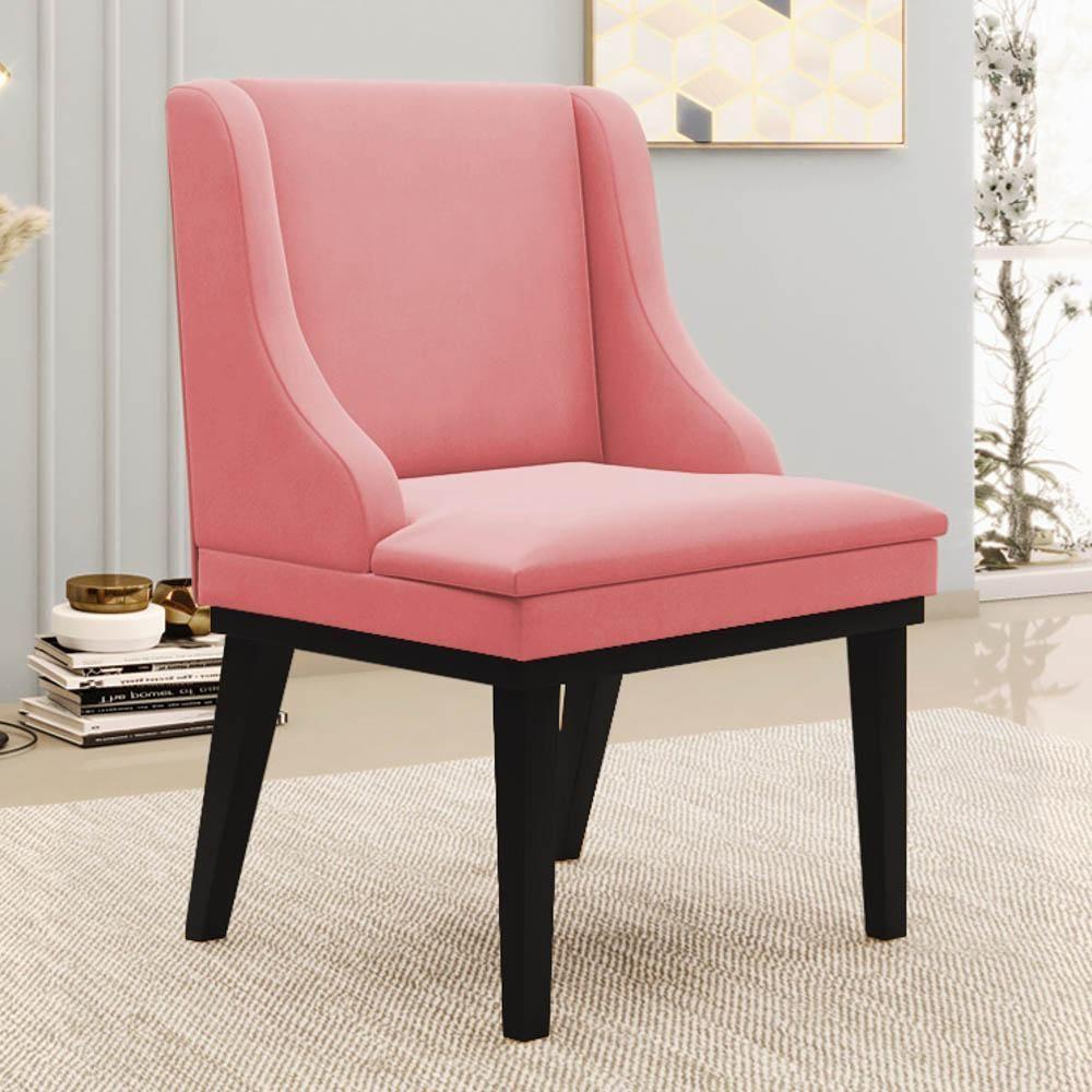 Kit 6 Cadeiras Estofadas Para Sala De Jantar Base Fixa De Madeira Preto Lia Suede Rosê - Ibiza